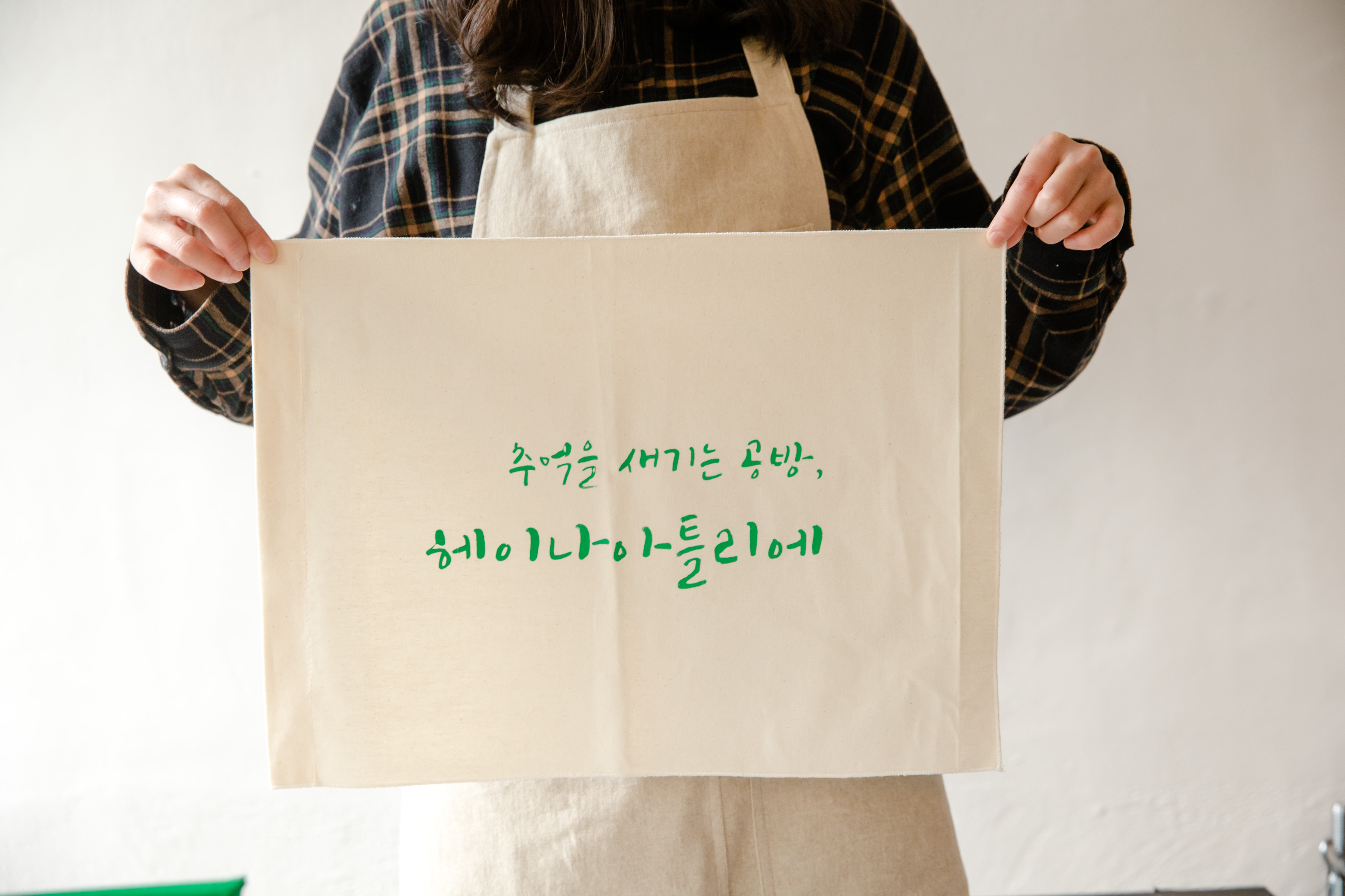 ‘추억을 새기는 공방, 헤이나 아틀리에’ 라는 슬로건으로 함께하는 모든 사람들이 제품에 디자인을 새기며, 잊지 못 할 예쁜 추억도 함께 새겨가길 바라는 마음을 담고 있습니다.