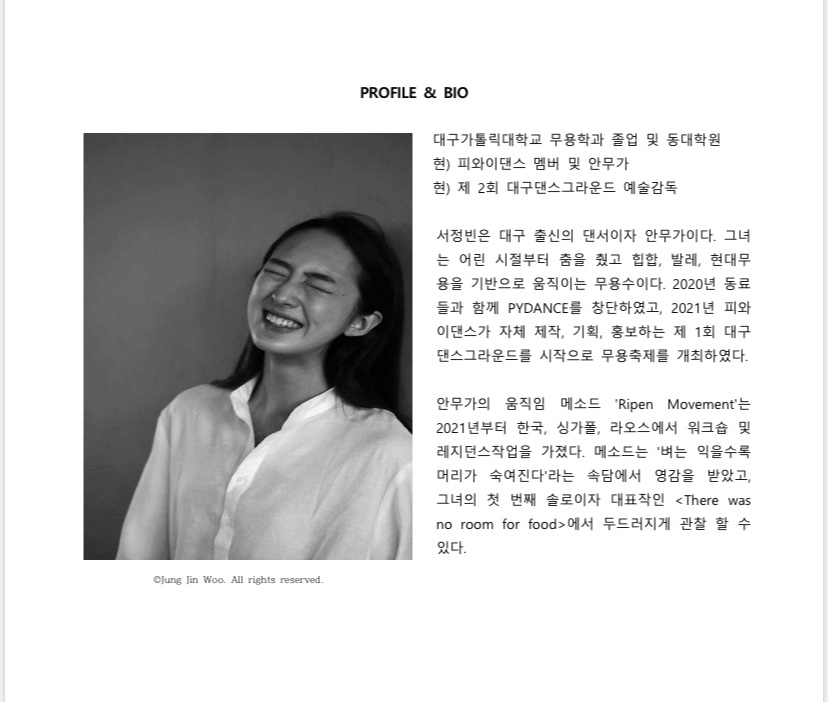 * 제공되는 입시 및 콩쿨 안무, 메소드, 작업물 등의 소유는 안무가 본인에게 있습니다. 안무 작업물 안에는 트레이닝 비용 및 참여자의 역량에 따른 지속적인 수정과 보완 등의 안무가의 역량이 들어있습니다. 무분별한 도용과 악의적인 사용은 삼가바랍니다.
