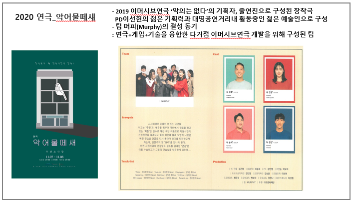 단, 공연의 경우 저작권은 극작가 및 연출가에게 있음을 알려드립니다.