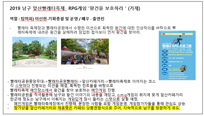 공연 제작 및 기획부터 문화예술콘텐츠(지역축제, 회사워크샵, 행사) 기획을 도와드립니다!