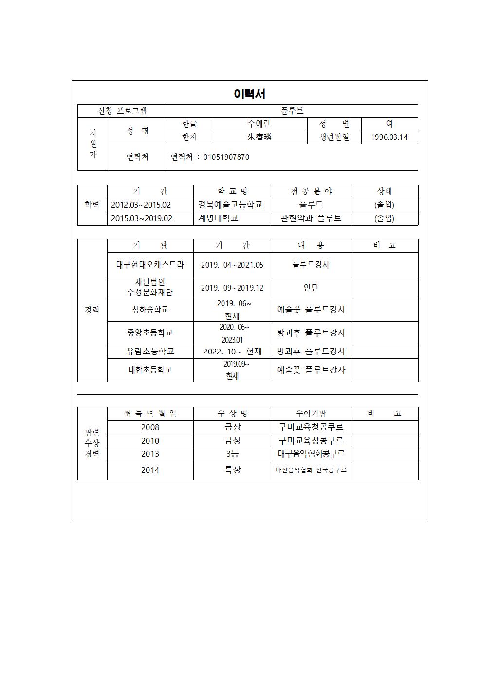 현재 대구를 비롯한 여러 지역에서 플루트 레슨과 연주를 하고 있는 예린입니다.