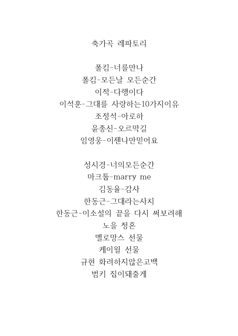 원하시는 축가 곡이 있다면 말씀해주세요 !