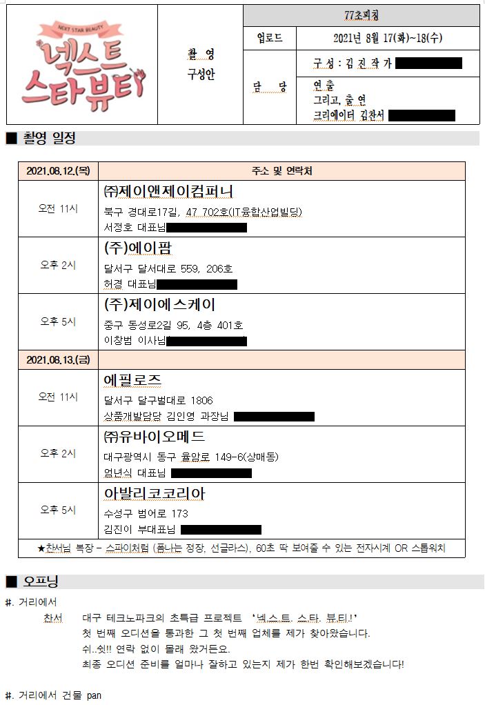 아이템서치/자료조사/구성/기획 모든 과정을 고객님과 같이 진행합니다.