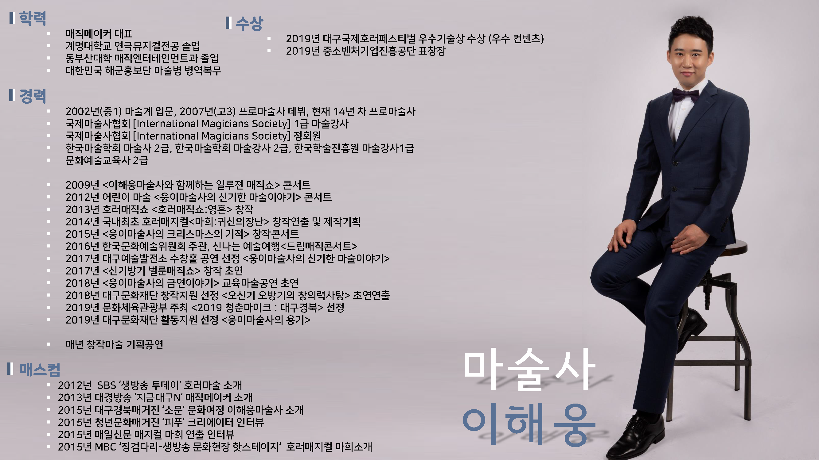 안녕하세요. 마술사 이해웅입니다.