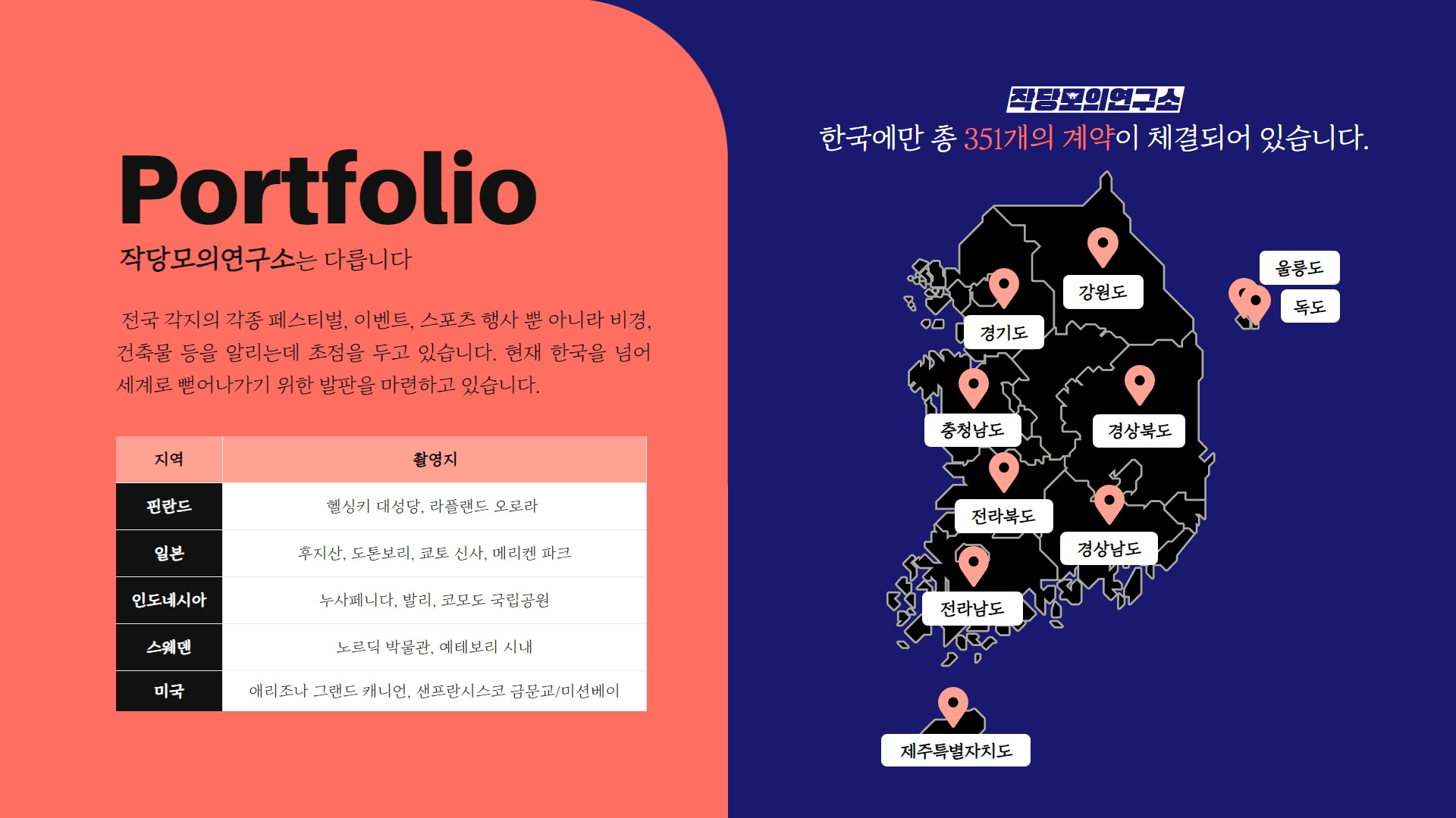 주 사업은 여행&관광 홍보 관련하여 관공서와 기업 외주를 받아 영상을 제작하는 일이며,