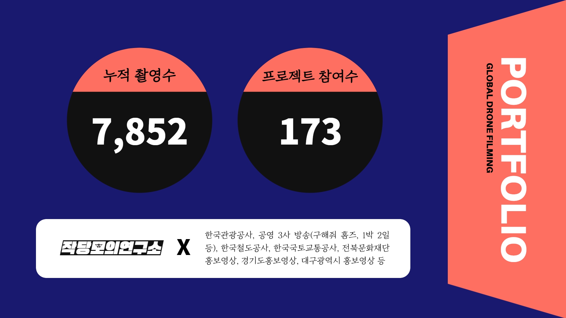 드론을 이용한 모든 종합 미디어 작품, 홍보 영상을 제작하여 컨텐츠를 판매 하는 것이 주 업무입니다.
