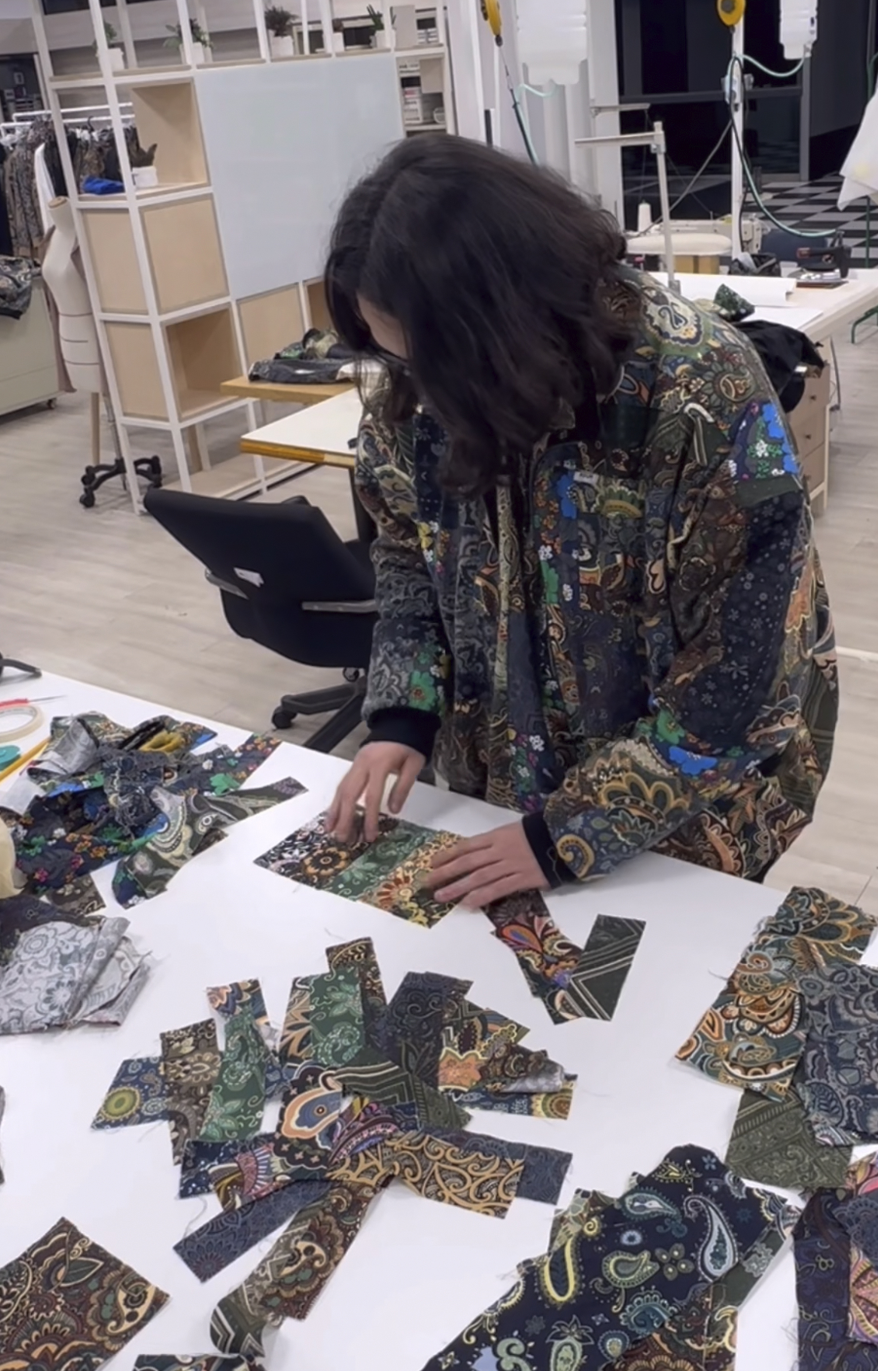 자체 제작한 텍스타일디자인으로 만든 원단을 이용하여 제품을 제작