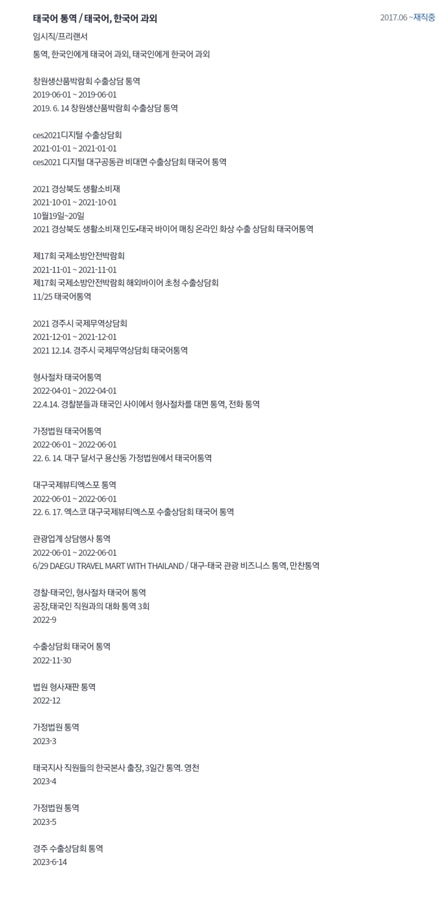 일상회화, 여행태국어, 비즈니스통역, 병원, 수출상담회통역