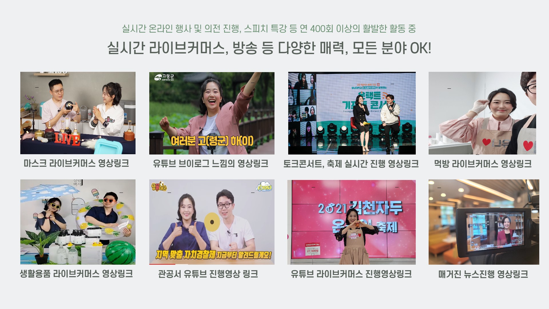 라이브커머스 진행부터, 의전 행사, 토크콘서트 진행, 음악회 등 다양한 행사 진행으로 여러분들의 시간을