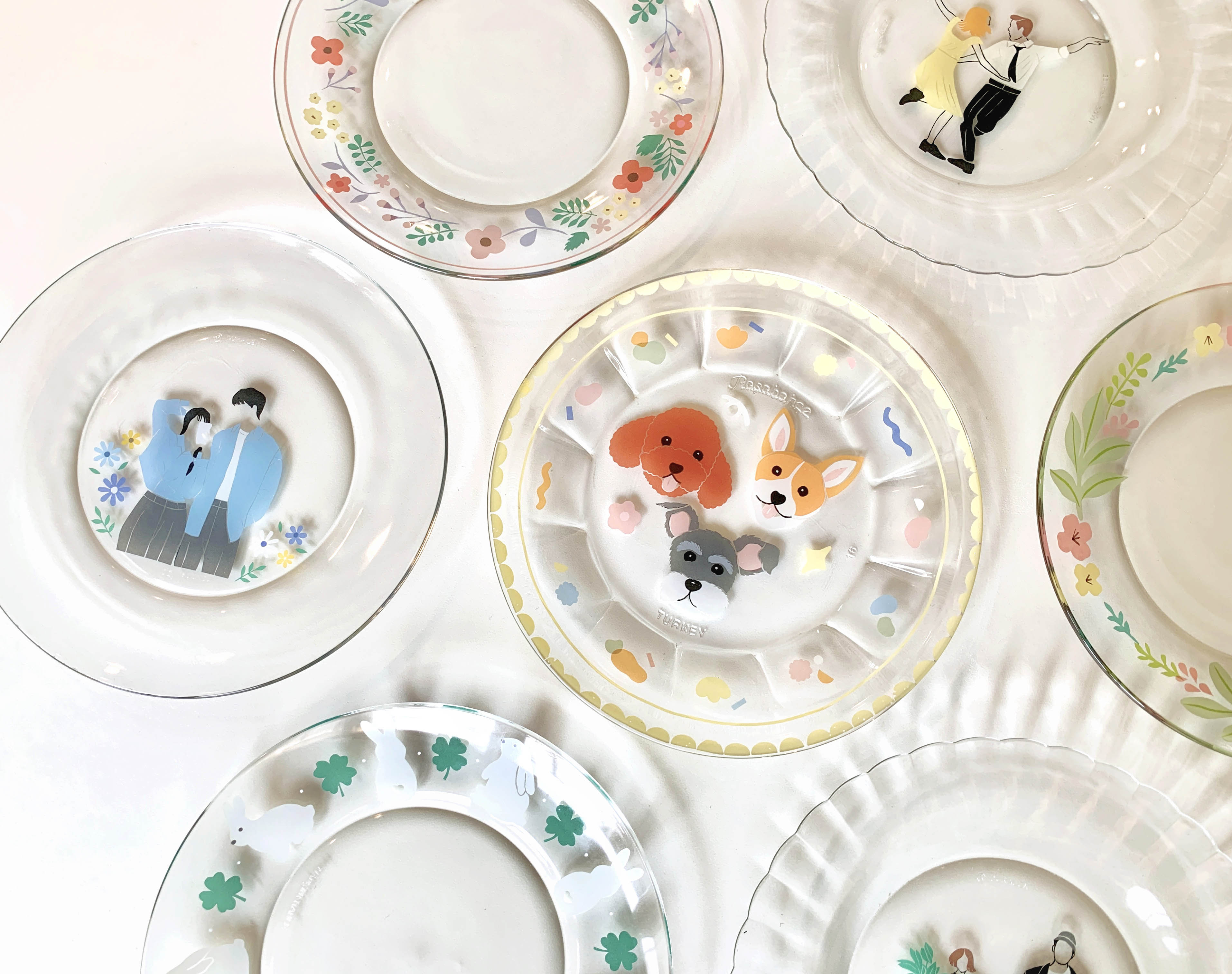 하얀 도자기와 투명한 유리 위에 전사지를 자르고 붙여 세상에 하나뿐인 나만의 접시&컵을 만드는 클래스입니다.