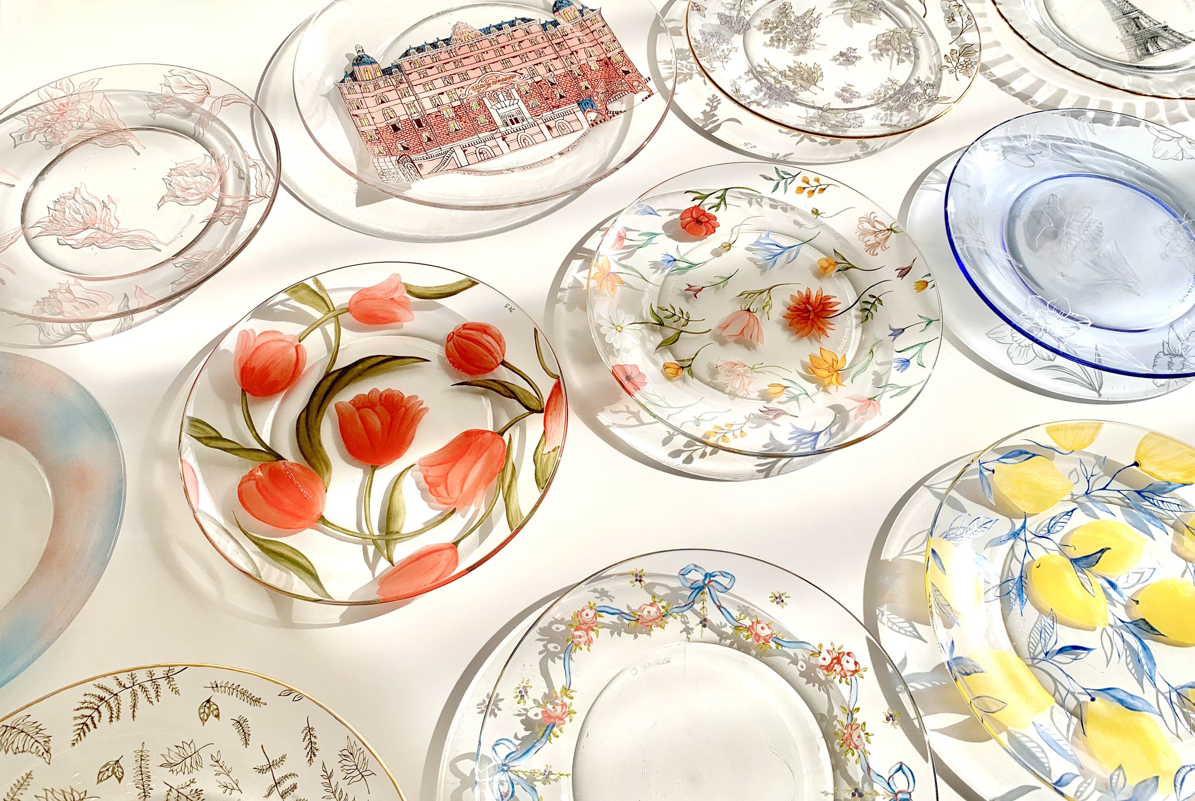 - 하얀 도자기와 투명한 유리 기물 위에 전용안료를 이용해 그림을 그려 나만의 그릇과 컵을 만드는 클래스입니다.