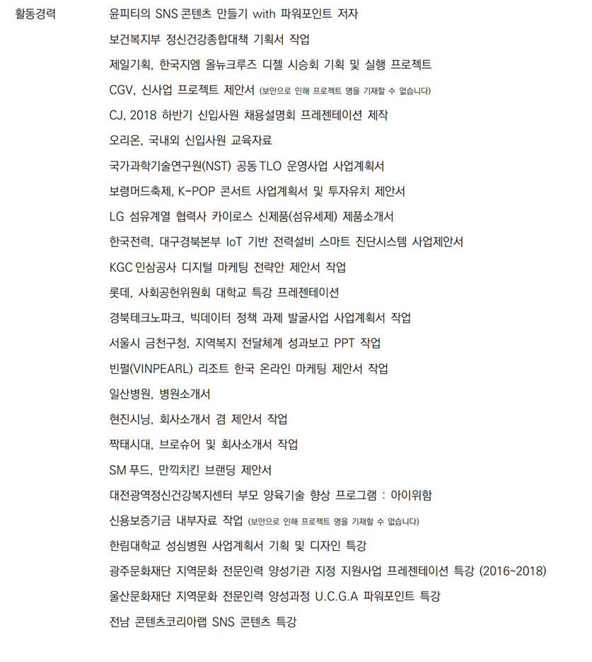 [2] 제일기획,SK,롯데,오리온CJ,CGV,KGC 등 대기업 프로젝트 진행