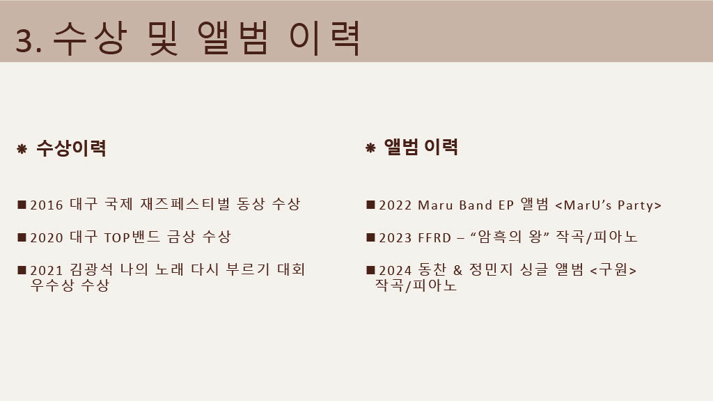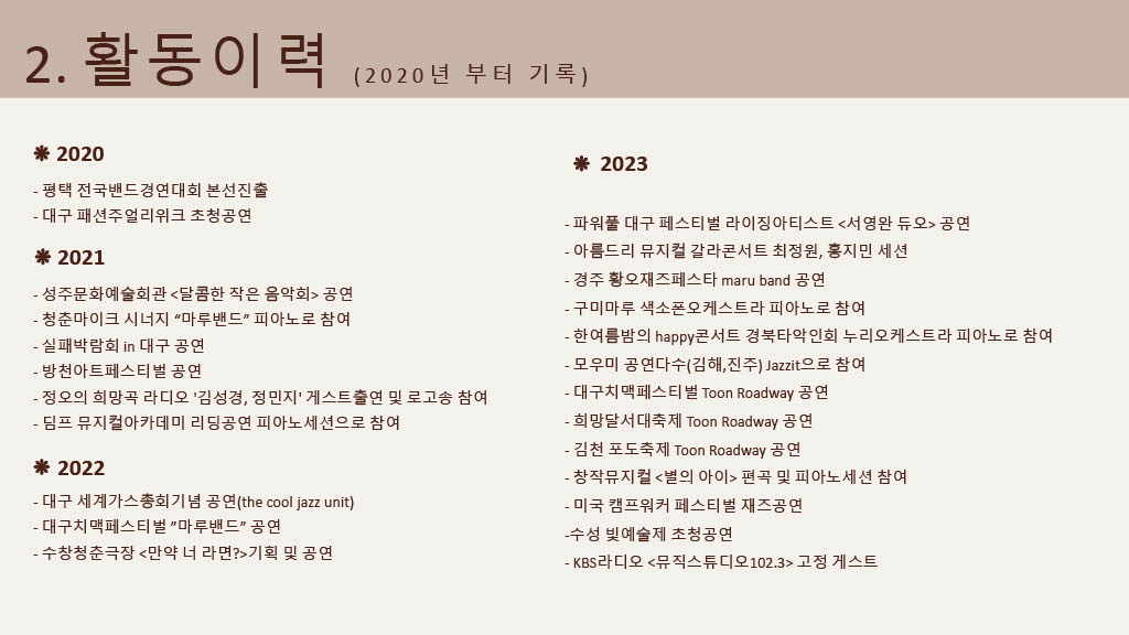 레슨-200,000~(협의) 맞춤공연- 인당400,000~(협의) mr제작- 200,000~(협의) |