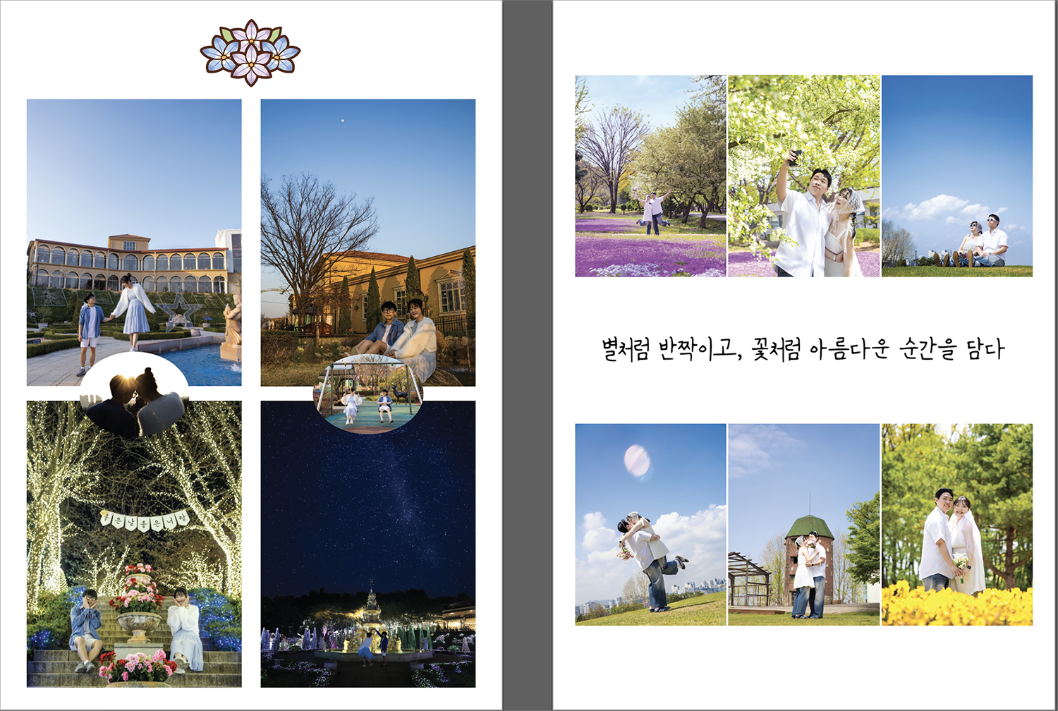 "그때 그 시간만의 색감을 담아 별처럼 반짝이는 순간, 꽃처럼 아름다운 순간을 담아드립니다"