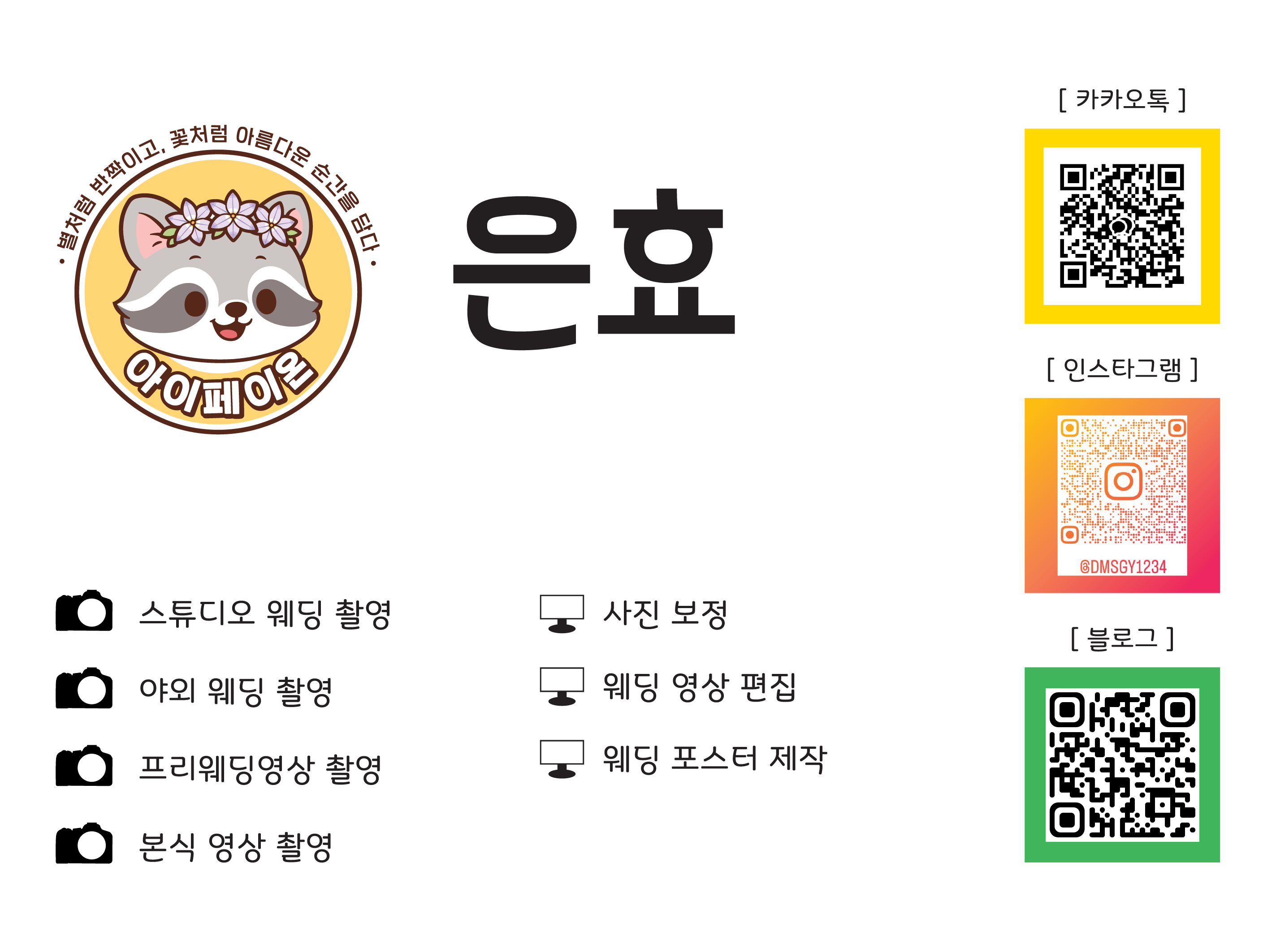 - 1. 카카오톡(연락하기 링크)으로 연락, 상담 후 촬영 일시, 장소 확정