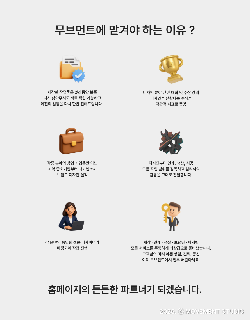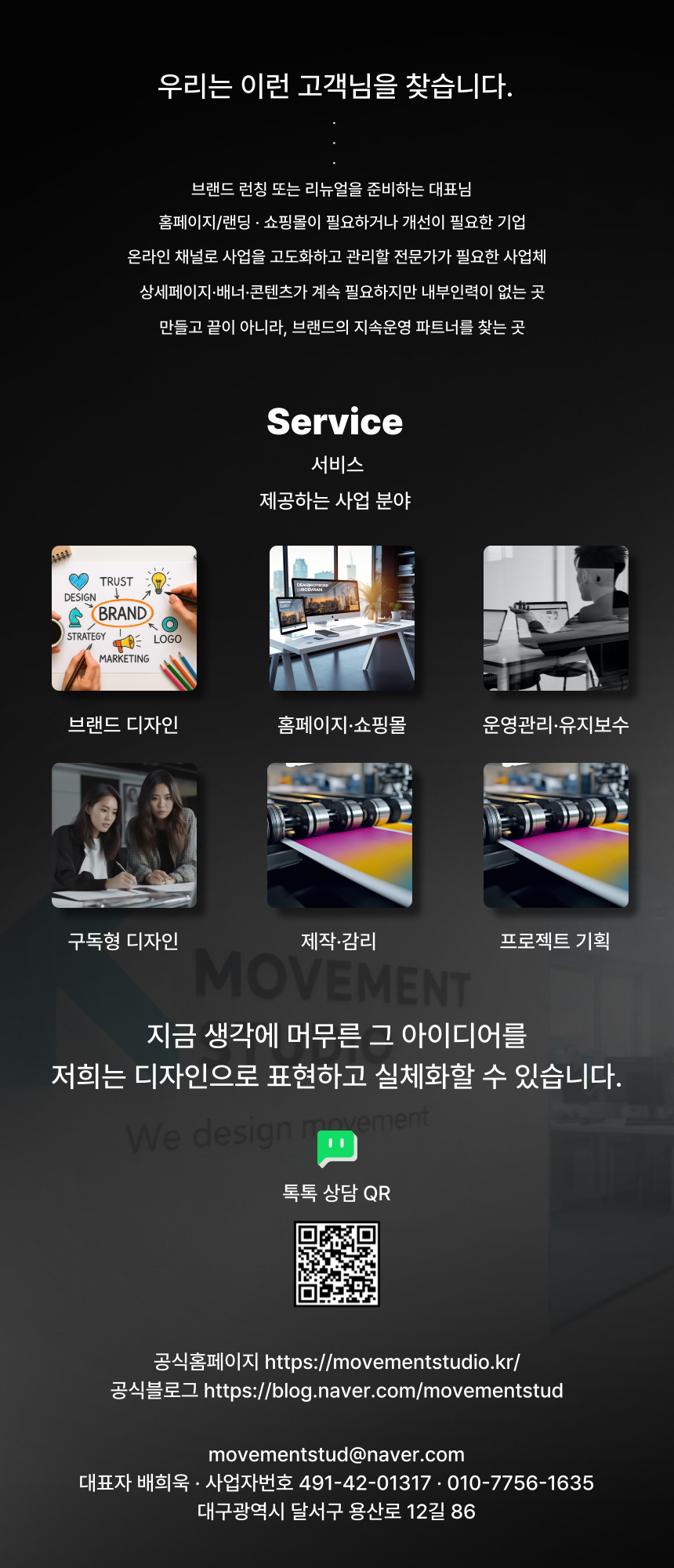 · 로고뿐 아니라 인쇄물, 홍보물, 홈페이지까지 통합적으로 맡기고 싶은 분
