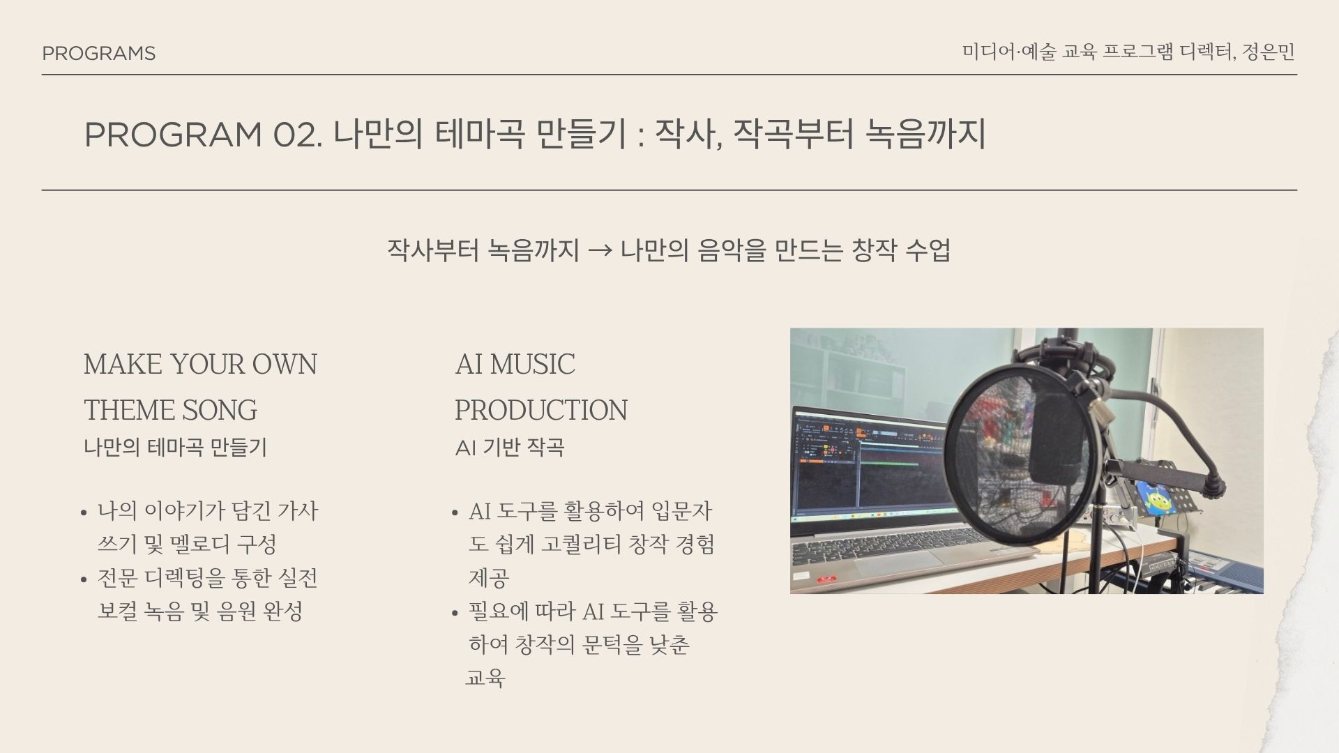 맞춤형 교육 운영 및 결과물(영상·음원) + 활동 사진·보고 자료 제공