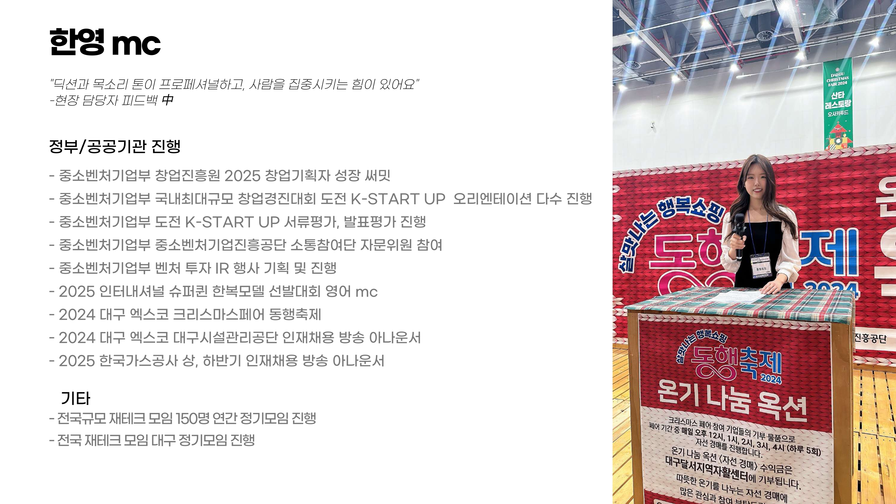 - 현) 프리랜서 아나운서 및 한영 mc, 프레젠터