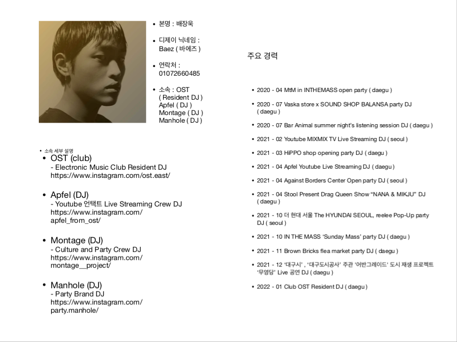 Electronic 기반의 House, Techno, Indie Dance 등을 플레이