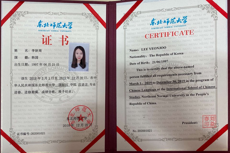 - 중국동북사범대학교 교환학생 수료
