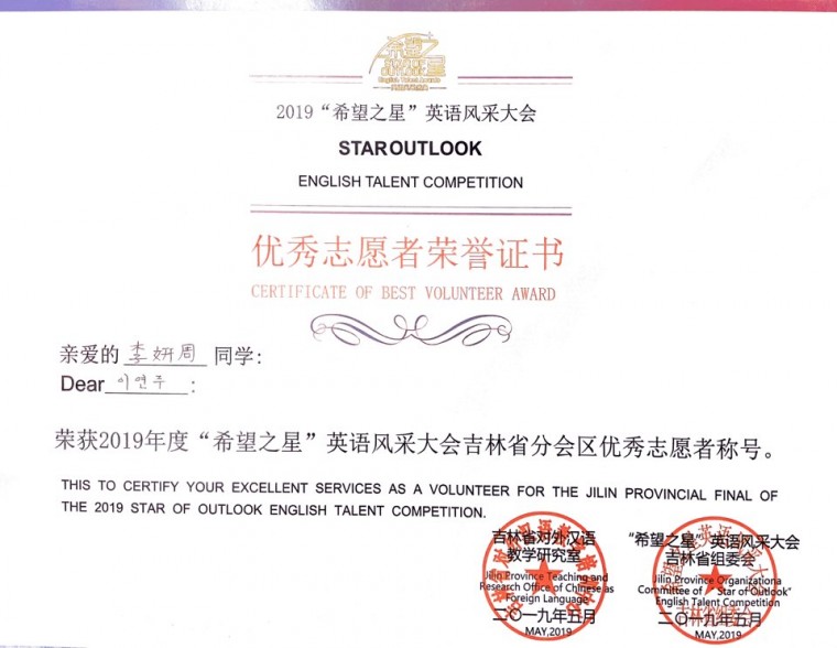 - 2020년 한국 대학생 중국어 말하기대회 대구,경북 지역 유일 본선 진출