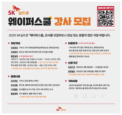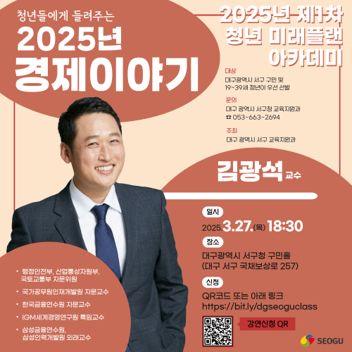 현재 모집 중 검색폼 대구광역시는 해당 페이지를 정보제공을 위한 목적으로 플랫폼을 운영하며, 각 게시글의 내용 및 운영방침에 대한 책임을 지지 않습니다. 대구광역시청년센터 사업 모아보기 전체보기 분야 : 전체 지원사업 채용/인턴/알바 기자단/서포터즈/자원봉사 공모전 교육/강연/토론 축제/공연/전시 커뮤니티활동 기타 정렬 : 전체 신규등록순 모집마감순 상태 : 전체 진행중 종료 기간 설정 검색 검색어 입력 꿀정보등록 누구나 쉽고 빠르게 청년정보를 등록하여 홍보할 수 있습니다. 전체선택 종료 2025년 달성청년혁신센터 캐릭터 공모전 DGIST 달성청년혁신센터 ~ 2025.03.24 대구광역시청년센터 종료 2025 청년도전지원사업 '젊핑' 장기(25주) 프로그램 참여자 모집 대구광역시청년센터 ~ 2025.03.24 종료 [구로 청년이룸] 구로구/G밸리 활동공간 필요한 청년 소모임 모집 (~3/23) 구로 청년이룸 ~ 2025.03.23 종료 [SK실트론과 함께하는 반도체스쿨] 강사 모집 더컴퍼니씨협동조합 ~ 2025.03.23 종료 [SK실트론 웨이퍼스쿨] 강사 모집 더컴퍼니씨협동조합 ~ 2025.03.23 종료 [김광석 교수 강연회 : 청년들에게 들려주는 2025년 경제이야기] 대구광역시 서구청 ~ 2025.03.23 종료 3월 쓰레기없는 로컬장터 BARI BARI 🎶 v12.오늘의 행동 내일의 기후 바리바리 ~ 2025.03.22 종료 1인 가구 사회적 관계망 형성 지원- '일(1)상 잇:다' 대구북구가족센터 ~ 2025.03.21 211 212 213 214 215 216 217 218 219 220