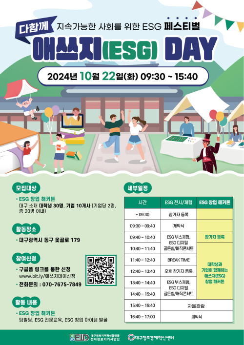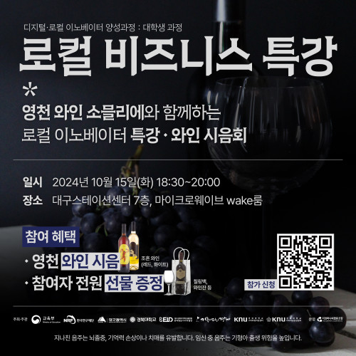 현재 모집 중 검색폼 대구광역시는 해당 페이지를 정보제공을 위한 목적으로 플랫폼을 운영하며, 각 게시글의 내용 및 운영방침에 대한 책임을 지지 않습니다. 대구광역시청년센터 사업 모아보기 전체보기 분야 : 전체 지원사업 채용/인턴/알바 기자단/서포터즈/자원봉사 공모전 교육/강연/토론 축제/공연/전시 커뮤니티활동 기타 정렬 : 전체 신규등록순 모집마감순 상태 : 전체 진행중 종료 기간 설정 검색 검색어 입력 꿀정보등록 누구나 쉽고 빠르게 청년정보를 등록하여 홍보할 수 있습니다. 전체선택 종료 문화 아카데미 [시즌3] | 댄스 클래스 남구청년센터 ~ 2024.10.16 종료 2024 ESG 창업 아이디어 해커톤 경북대학교 전자정보기기사업단 ~ 2024.10.16 종료 영천 와인 소믈리에와 함께하는 로컬 이노베이터 특강 [와인 시음회] 대구경북지역혁신플랫폼 전자정보기기사업단, (사)커뮤니티와경제, 더컴퍼니씨협동조합 ~ 2024.10.14 종료 김혜나 작가 <술 맛 멋> 북토크&시음회 치우친 취향 ~ 2024.10.14 대구광역시청년센터 종료 2024 제10회 대구청년주간 ' 청년천하동성로 vol.2' 대구광역시청년센터 ~ 2024.10.13 종료 선셋 워크 인 포트리스 : 함께 걸으면 좋은일이 있을거야 청도군 DMO(사단법인 경북시민재단) ~ 2024.10.12 종료 <미래를 먼저 경험했습니다> 북토크 대구교사 책모임 다독임 ~ 2024.10.12 종료 김경일의 토크콘서트 "지혜로운 인간생활" 대구남구대덕문화전당 ~ 2024.10.12 261 262 263 264 265 266 267 268 269 270