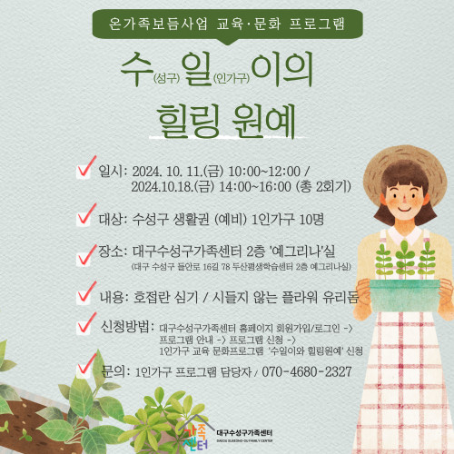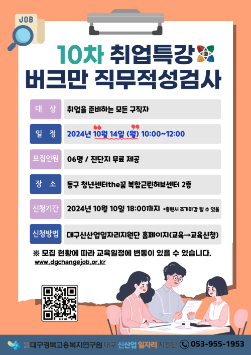 현재 모집 중 검색폼 대구광역시는 해당 페이지를 정보제공을 위한 목적으로 플랫폼을 운영하며, 각 게시글의 내용 및 운영방침에 대한 책임을 지지 않습니다. 대구광역시청년센터 사업 모아보기 전체보기 분야 : 전체 지원사업 채용/인턴/알바 기자단/서포터즈/자원봉사 공모전 교육/강연/토론 축제/공연/전시 커뮤니티활동 기타 정렬 : 전체 신규등록순 모집마감순 상태 : 전체 진행중 종료 기간 설정 검색 검색어 입력 꿀정보등록 누구나 쉽고 빠르게 청년정보를 등록하여 홍보할 수 있습니다. 전체선택 종료 1인가구 힐링 원예 프로그램 참여자 모집하고 있습니다! 대구수성구가족센터 ~ 2024.10.11 종료 원예체험부스 및 성과공유회 청년마루 ~ 2024.10.11 종료 2024년 청년 창업 특강 <창업상륙작전> DGIST 달성청년혁신센터 ~ 2024.10.10 종료 웹 취약점 진단 기술 대구정보보호지원센터 ~ 2024.10.10 종료 생활 속 3D 프린 (재)대구테크노파크 스타트라인 ~ 2024.10.10 종료 취업특강 버크만 직무적성검사 참여자 모집 사단법인대구경북고용복지연구원 ~ 2024.10.10 종료 제2회 동구 청년 문화제「청년 The꿈 페스타」 동구청년센터 the꿈 ~ 2024.10.09 종료 2024년 취업역량강화 집단상담프로그램 청년취업 GYM 대구고용복지 +센터 ~ 2024.10.09 261 262 263 264 265 266 267 268 269 270