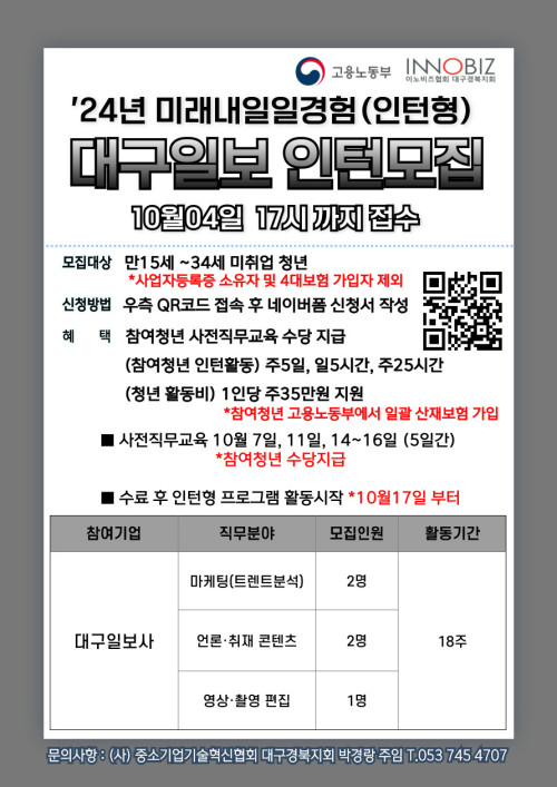 현재 모집 중 검색폼 대구광역시는 해당 페이지를 정보제공을 위한 목적으로 플랫폼을 운영하며, 각 게시글의 내용 및 운영방침에 대한 책임을 지지 않습니다. 대구광역시청년센터 사업 모아보기 전체보기 분야 : 전체 지원사업 채용/인턴/알바 기자단/서포터즈/자원봉사 공모전 교육/강연/토론 축제/공연/전시 커뮤니티활동 기타 정렬 : 전체 신규등록순 모집마감순 상태 : 전체 진행중 종료 기간 설정 검색 검색어 입력 꿀정보등록 누구나 쉽고 빠르게 청년정보를 등록하여 홍보할 수 있습니다. 전체선택 종료 독서모임2기 참여자 모집 대구남구가족센터 ~ 2024.10.07 종료 🍷영천 와인 소믈리에와 함께하는 로컬 이노베이터 특강 [와인시음회] 참여자 모집🍷 더컴퍼니씨협동조합 ~ 2024.10.07 종료 청년취업GYM 대구고용센터 ~ 2024.10.06 종료 청년 불평등 포럼: 지역에서 어떻게 살고 있나요? 전국청년정책네트워크 ~ 2024.10.05 종료 제2회 SDGs 영화제 대구지속가능발전협의회 ~ 2024.10.05 종료 <인공지능 시대와 인문치유> 저자 강연 대구경북인문학협동조합 ~ 2024.10.05 종료 『'24년 미래내일일경험 인턴형』 대구일보사 참여인턴모집 (사)중소기업기술혁신협회 대구경북지회 ~ 2024.10.04 종료 2·28청년 공연 아카데미 모집 2.28민주운동기념사업회 평생교육원 ~ 2024.10.04 271 272 273 274 275 276 277 278 279 280