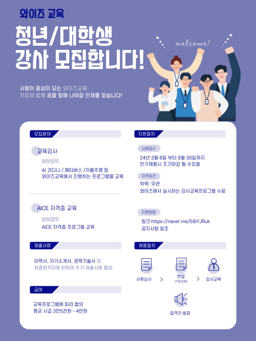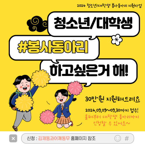 현재 모집 중 검색폼 대구광역시는 해당 페이지를 정보제공을 위한 목적으로 플랫폼을 운영하며, 각 게시글의 내용 및 운영방침에 대한 책임을 지지 않습니다. 대구광역시청년센터 사업 모아보기 전체보기 분야 : 전체 지원사업 채용/인턴/알바 기자단/서포터즈/자원봉사 공모전 교육/강연/토론 축제/공연/전시 커뮤니티활동 기타 정렬 : 전체 신규등록순 모집마감순 상태 : 전체 진행중 종료 기간 설정 검색 검색어 입력 꿀정보등록 누구나 쉽고 빠르게 청년정보를 등록하여 홍보할 수 있습니다. 전체선택 종료 청소년/대학생 봉사동아리 물품지원 사업 공고 (30만원 상당) (사)김제동과어깨동무 ~ 2024.09.30 종료 [제조기업기반 빅데이터 분석 실무] K디지털 트레이닝 교육 (사)한국기술사업화진흥협회 ~ 2024.09.30 종료 2024 양성평등 문화확산 콘텐츠 공모전(대구지역) 대구광역시행복진흥사회서비스원 ~ 2024.09.30 종료 2024 RISE ACADEMY 수강자 모집 (8/20, 9/10, 10/15) 대구경북지역혁신플랫폼 전자정보기기사업단 ~ 2024.09.30 종료 2024년 탄소중립 실천 대중교통 이용 활성화 「All 타」 이벤트 대구광역시행복진흥사회서비스원 ~ 2024.09.30 종료 대학(원)생 아이디어 제품 제작 지원 사업 참가 학생 모집 (~9월) 대구경북지역혁신플랫폼 전자정보기기사업단 ~ 2024.09.30 종료 초중고 및 지자체에서 교육할 열정적인 청년들 모집합니다! 와이즈교육 ~ 2024.09.30 종료 청년, 인문학 카페 남구청년센터 & 경북대학교 인문카운슬링센터 ~ 2024.09.30 271 272 273 274 275 276 277 278 279 280