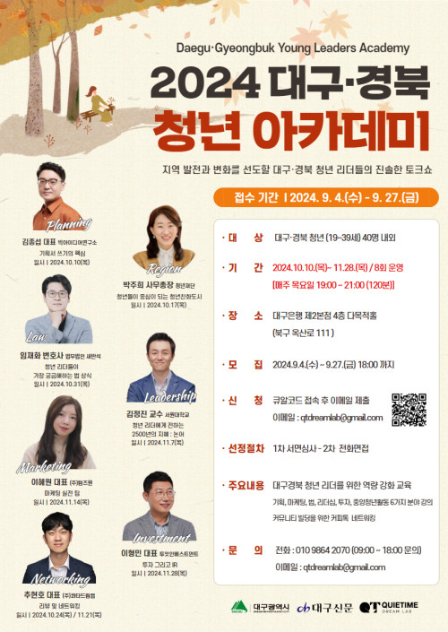 현재 모집 중 검색폼 대구광역시는 해당 페이지를 정보제공을 위한 목적으로 플랫폼을 운영하며, 각 게시글의 내용 및 운영방침에 대한 책임을 지지 않습니다. 대구광역시청년센터 사업 모아보기 전체보기 분야 : 전체 지원사업 채용/인턴/알바 기자단/서포터즈/자원봉사 공모전 교육/강연/토론 축제/공연/전시 커뮤니티활동 기타 정렬 : 전체 신규등록순 모집마감순 상태 : 전체 진행중 종료 기간 설정 검색 검색어 입력 꿀정보등록 누구나 쉽고 빠르게 청년정보를 등록하여 홍보할 수 있습니다. 전체선택 종료 『'24년 미래내일일경험 인턴형』 참여자 모집 (사)중소기업기술혁신협회 대구경북지회 ~ 2024.09.27 종료 고령으로 농촌여행!! 나만의 농촌여행을 기획하는 경험해보기! 농업회사법인 희망토 주식회사 ~ 2024.09.27 종료 2024 달서청년주간 행사 운영 안내 달서구청 일자리지원과 청년지원팀 ~ 2024.09.27 종료 '전문가와 시민이 함께하는 2024 금호강 생태 조사' 자원봉사자 모집 생명평화아시아 ~ 2024.09.27 종료 [실무중심디지털 마케팅 데이터 분석가 양성과정] 교육생 모집 (09.27 개강) 한국품질재단 ~ 2024.09.27 종료 3WEEK CHALLENGE 운동명가 조아짐 ~ 2024.09.27 종료 다정한 수리 생활 🛠️ 우산 수리 워크숍 ☂️ 더커먼 ~ 2024.09.27 종료 2024대구경북청년아카데미 대구광역시, 대구신문, (주)콰타드림랩 ~ 2024.09.27 271 272 273 274 275 276 277 278 279 280