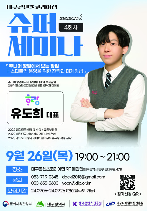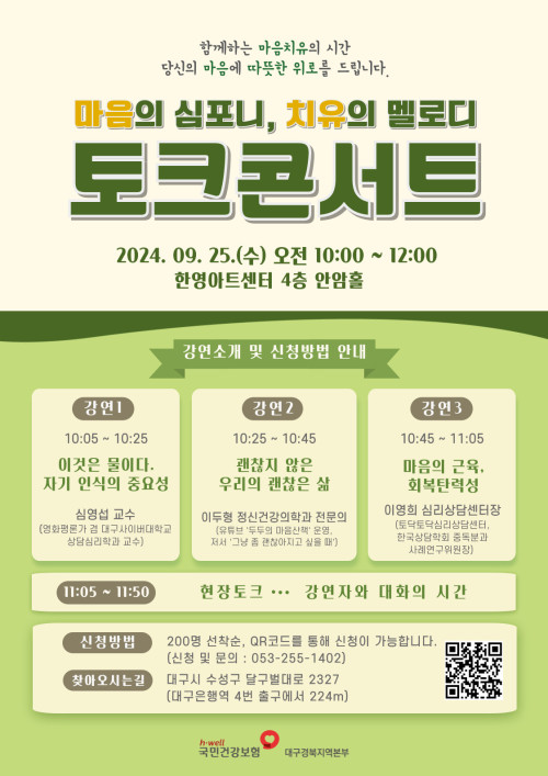 현재 모집 중 검색폼 대구광역시는 해당 페이지를 정보제공을 위한 목적으로 플랫폼을 운영하며, 각 게시글의 내용 및 운영방침에 대한 책임을 지지 않습니다. 대구광역시청년센터 사업 모아보기 전체보기 분야 : 전체 지원사업 채용/인턴/알바 기자단/서포터즈/자원봉사 공모전 교육/강연/토론 축제/공연/전시 커뮤니티활동 기타 정렬 : 전체 신규등록순 모집마감순 상태 : 전체 진행중 종료 기간 설정 검색 검색어 입력 꿀정보등록 누구나 쉽고 빠르게 청년정보를 등록하여 홍보할 수 있습니다. 전체선택 종료 수요詩식회 : 시식할 詩 「신용목 시인과의 만남」 정호승문학관 ~ 2024.09.25 종료 2024년 대구콘텐츠코리아랩 슈퍼세미나 시즌 2 [4회차- 호랑에듀 유도희 대표] 참여자 모집 (재)대구디지털혁신진흥원 ~ 2024.09.25 종료 2024 지역경제 혁신 박람회 행정안전부, 한국일보 ~ 2024.09.25 종료 [WISET]2024 W브릿지 「인재정보 등록」 이벤트 (8/5~9/25) 한국여성과학기술인육성재단 ~ 2024.09.25 종료 이수페타시스 기업탐방-청년테마별 취업지원사업 대구시,대구광역시 ~ 2024.09.24 종료 마음건강챙김 토크 콘서트 '마음의 심포니, 치유의 멜로디' 개최 안내 국민건강보험공단 대구경북지역본부 ~ 2024.09.24 종료 2024청년테마별 - 이수페타시스 기업탐방 대구광역시, 대구상공회의소 ~ 2024.09.23 대구광역시청년센터 종료 2024 청년생활종합상담사업 청년상담소 커뮤니티 집단상담 6회차 프로그램 참여자 모집 대구광역시청년센터 ~ 2024.09.23 271 272 273 274 275 276 277 278 279 280