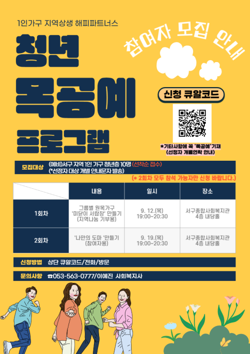 현재 모집 중 검색폼 대구광역시는 해당 페이지를 정보제공을 위한 목적으로 플랫폼을 운영하며, 각 게시글의 내용 및 운영방침에 대한 책임을 지지 않습니다. 대구광역시청년센터 사업 모아보기 전체보기 분야 : 전체 지원사업 채용/인턴/알바 기자단/서포터즈/자원봉사 공모전 교육/강연/토론 축제/공연/전시 커뮤니티활동 기타 정렬 : 전체 신규등록순 모집마감순 상태 : 전체 진행중 종료 기간 설정 검색 검색어 입력 꿀정보등록 누구나 쉽고 빠르게 청년정보를 등록하여 홍보할 수 있습니다. 전체선택 종료 페이스페인팅 전문봉사단 양성과정 참여자 모집 수성구자원봉사센터 ~ 2024.09.13 종료 추가모집 [2024 대구 청년 금융부채 인터뷰 'VOICE ON'] 대구청년연대은행디딤 ~ 2024.09.13 종료 2024년 대구청년 슬기로운 인생계획 지원사업_[청년의 날 기념특강 1기] 대구광역시, (재)대구창조경제혁신센터 ~ 2024.09.13 종료 [두나무 넥스트 드림] 2차년도 무이자 생계비 대출 지원 사업 참가자 모집 안내(~9/13) (사)함께만드는세상(사회연대은행) ~ 2024.09.13 종료 [두나무 넥스트 드림] 2차년도 재무 컨설팅&생활비 지원 사업 참가자 모집 안내(~9/13) (사)함께만드는세상(사회연대은행) ~ 2024.09.13 종료 [서구종합사회복지관] 9월 목공예 프로그램 참여자 모집 서구종합사회복지관 ~ 2024.09.12 종료 [로컬로 돔황챠!] 명절 잔소리 성토대회 행 ~ 2024.09.12 종료 2024년 대구콘텐츠코리아랩 슈퍼세미나시즌2 [카카오톡 이모티콘1위 씨엠제이 최민정 작가] (재)대구디지털혁신진흥원 ~ 2024.09.12 281 282 283 284 285 286 287 288 289 290