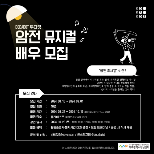 현재 모집 중 검색폼 대구광역시는 해당 페이지를 정보제공을 위한 목적으로 플랫폼을 운영하며, 각 게시글의 내용 및 운영방침에 대한 책임을 지지 않습니다. 대구광역시청년센터 사업 모아보기 전체보기 분야 : 전체 지원사업 채용/인턴/알바 기자단/서포터즈/자원봉사 공모전 교육/강연/토론 축제/공연/전시 커뮤니티활동 기타 정렬 : 전체 신규등록순 모집마감순 상태 : 전체 진행중 종료 기간 설정 검색 검색어 입력 꿀정보등록 누구나 쉽고 빠르게 청년정보를 등록하여 홍보할 수 있습니다. 전체선택 종료 8월 쓰레기 없는 로컬장터 바리바리 📩BARI BARI v10.N맥 페스티벌 바리바리 ~ 2024.09.01 종료 양다솔 작가와 함께하는 토크쇼 공존을 꿈꾸는 사람들 ~ 2024.09.01 종료 대학생 원데이 클래스 - 가죽공예 체험(필통 만들기) 참가 학생 모집 (~9/1) 대구경북지역혁신플랫폼 전자정보기기사업단 ~ 2024.09.01 종료 [축제] 대구N맥페스티벌 & 공존을 꿈꾸는 모두의 영화제 공존을 꿈꾸는 사람들 ~ 2024.09.01 종료 [참관자 모집] 2024 정보통신분야 프로젝트 발표회(Job Craft) 대구지역인적자원개발위원회 ~ 2024.09.01 종료 [2024년 청년테마별 취업지원사업 ] 파워풀 청년 JOB 해커톤 사상 최초! 해커톤 취업캠프 신청하고 꿈의 직장으로 GO! (주)클라인 ~ 2024.09.01 종료 [두다닷] 암전 뮤지컬 배우 모집 두다닷 ~ 2024.09.01 종료 사이와 너머 : 쓰고, 구성하고, 묶기 황금동 작업실 ~ 2024.08.31 281 282 283 284 285 286 287 288 289 290