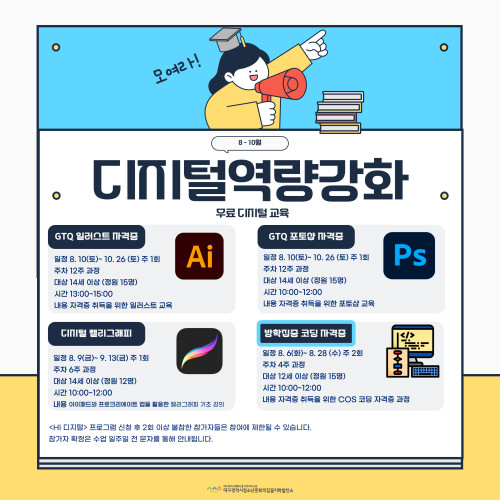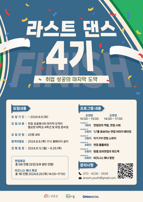 현재 모집 중 검색폼 대구광역시는 해당 페이지를 정보제공을 위한 목적으로 플랫폼을 운영하며, 각 게시글의 내용 및 운영방침에 대한 책임을 지지 않습니다. 대구광역시청년센터 사업 모아보기 전체보기 분야 : 전체 지원사업 채용/인턴/알바 기자단/서포터즈/자원봉사 공모전 교육/강연/토론 축제/공연/전시 커뮤니티활동 기타 정렬 : 전체 신규등록순 모집마감순 상태 : 전체 진행중 종료 기간 설정 검색 검색어 입력 꿀정보등록 누구나 쉽고 빠르게 청년정보를 등록하여 홍보할 수 있습니다. 전체선택 종료 청년 창업·창직 Business Up! 프로그램(GO TO JAPAN '동경전자전' 참관) 참가 학생 모집 (~8/6) 대구경북지역혁신플랫폼 전자정보기기사업단 ~ 2024.08.06 종료 <2024 산림창업 청년학교> 참여 청년 모집 더컴퍼니씨협동조합 ~ 2024.08.06 종료 [꼼지락발전소] 디지털역량강화 8월 -10월 모집 안내 청소년문화의집 꼼지락발전소 ~ 2024.08.06 종료 [라스트댄스] 취업을 향한 마지막 도약, 라스트댄스 4기 모집!(~8/6) 구로청년이룸 ~ 2024.08.06 종료 파워풀 청년 JOB 캠프-2024년 청년테마별 취업지원사업 대구광역시, 대구상공회의소 ~ 2024.08.05 종료 파워풀 청년 JOB 해커톤 취업캠프-2024년 청년테마별 취업지원사업 대구광역시, 대구상공회의소 ~ 2024.08.05 종료 [문체부X한국문화예술위원회] 청년인문공감 '문화자유교실' 참여청년 모집 한국문화예술위원회 ~ 2024.08.05 종료 《 2024 예술로 어울림 사업 취향의숲⎟남구편 시즌 1 》 스트릿컬처팩토리x대구음악창작소x남구청년센터x대명공연예술센터 ~ 2024.08.05 301 302 303 304 305 306 307 308 309 310
