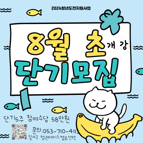현재 모집 중 검색폼 대구광역시는 해당 페이지를 정보제공을 위한 목적으로 플랫폼을 운영하며, 각 게시글의 내용 및 운영방침에 대한 책임을 지지 않습니다. 대구광역시청년센터 사업 모아보기 전체보기 분야 : 전체 지원사업 채용/인턴/알바 기자단/서포터즈/자원봉사 공모전 교육/강연/토론 축제/공연/전시 커뮤니티활동 기타 정렬 : 전체 신규등록순 모집마감순 상태 : 전체 진행중 종료 기간 설정 검색 검색어 입력 꿀정보등록 누구나 쉽고 빠르게 청년정보를 등록하여 홍보할 수 있습니다. 전체선택 종료 '사물이동성 Mobility of Things' Davide 옥 작가와 함께하는 온라인 독서모임 세모람 ~ 2024.07.30 종료 [청년도전지원사업] 아무튼,시작 3기 모집 (7/3~7/30) 구로 청년이룸 ~ 2024.07.30 종료 2024청년도전지원사업 달서구청년도전지원사업본부 ~ 2024.07.29 종료 '너, 내 소비자가 돼라' 이은아 작가와 함께하는 온라인 독서모임 세모람 ~ 2024.07.29 종료 취업특강 버크만 직무적성검사 참여자 모집 사단법인대구경북고용복지연구원 ~ 2024.07.29 대구광역시청년센터 종료 고립청년 마음돌봄사업 <심화심리상담 시즌3> 참여자 모집 대구광역시청년센터 ~ 2024.07.29 대구광역시청년센터 종료 사회적 고립청년을 위한 마음돌봄사업 <집단상담 시즌3> 참여자 모집 대구광역시청년센터 ~ 2024.07.29 종료 “상호교차성” 독서모임 시즌1(장애학) 구성원 모집 대구여성주의그룹 나쁜페미니스트 ~ 2024.07.29 301 302 303 304 305 306 307 308 309 310