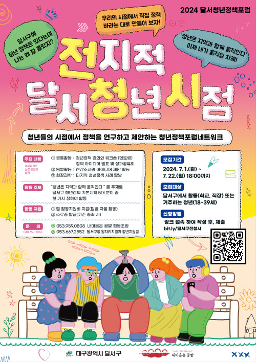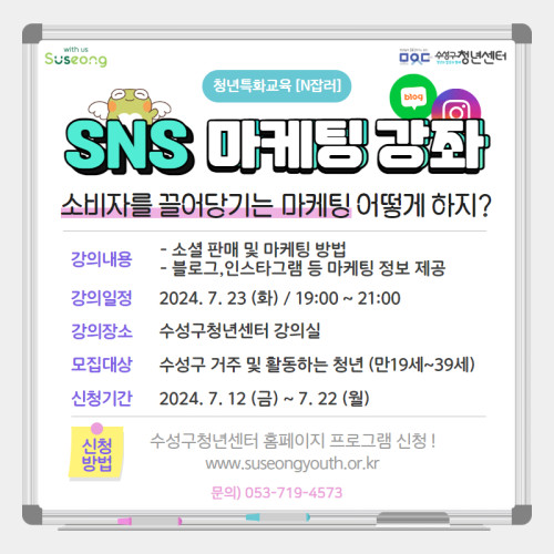 현재 모집 중 검색폼 대구광역시는 해당 페이지를 정보제공을 위한 목적으로 플랫폼을 운영하며, 각 게시글의 내용 및 운영방침에 대한 책임을 지지 않습니다. 대구광역시청년센터 사업 모아보기 전체보기 분야 : 전체 지원사업 채용/인턴/알바 기자단/서포터즈/자원봉사 공모전 교육/강연/토론 축제/공연/전시 커뮤니티활동 기타 정렬 : 전체 신규등록순 모집마감순 상태 : 전체 진행중 종료 기간 설정 검색 검색어 입력 꿀정보등록 누구나 쉽고 빠르게 청년정보를 등록하여 홍보할 수 있습니다. 전체선택 종료 청년특화교육[N잡러] - SNS마케팅 강좌 개설! 수성구청년센터 ~ 2024.07.22 대구광역시청년센터 종료 [제2024-05호] 대구광역시청년센터 인재채용 공고 대구광역시청년센터 ~ 2024.07.22 종료 '애플 엔비디아 쇼크웨이브' 아시아경제 박종민 기자와 함께하는 랜선 책모임 세모람 ~ 2024.07.22 종료 2차 취업특강 버크만 직무적성검사 참여자 모집(24.07.26) 사단법인대구경북고용복지연구원 ~ 2024.07.22 종료 공공데이터 활용 도로 관리 효율화 해커톤 참가자 모집 (~7/22) 대구경북지역혁신플랫폼 전자정보기기사업단 ~ 2024.07.22 종료 <전지적 달서청년 시점> 참가자 모집 커뮤니티디자인 내마음은 콩밭 협동조합 ~ 2024.07.22 종료 생각하는 크리에이터, 띵크 '캐릭터 디자인반' 모집 구로 청년이룸 ~ 2024.07.22 종료 [WISET] 2024년 현직자(인공지능 산업 분야)와 함께하는 취업 전략 세미나(~7/22) 한국여성과학기술인육성재단 ~ 2024.07.22 311 312 313 314 315 316 317 318 319 320