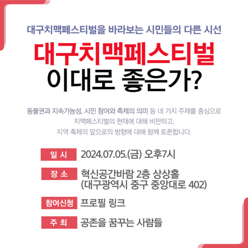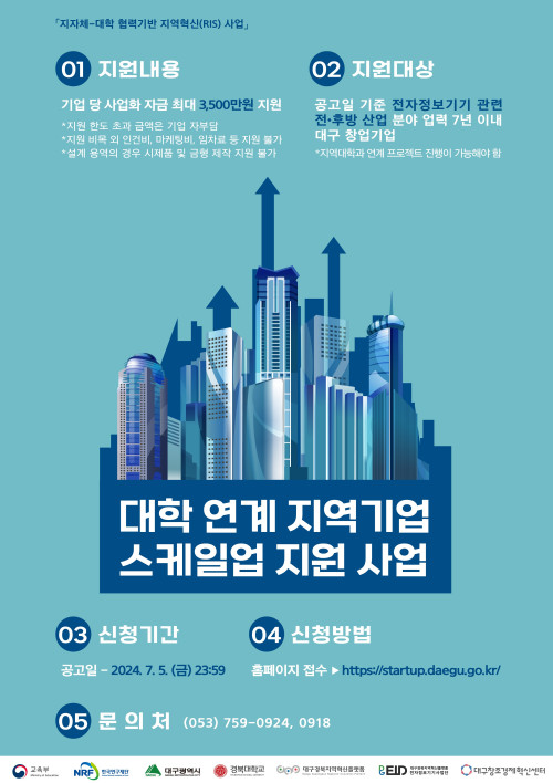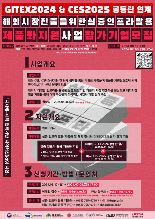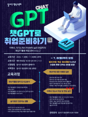 현재 모집 중 검색폼 대구광역시는 해당 페이지를 정보제공을 위한 목적으로 플랫폼을 운영하며, 각 게시글의 내용 및 운영방침에 대한 책임을 지지 않습니다. 대구광역시청년센터 사업 모아보기 전체보기 분야 : 전체 지원사업 채용/인턴/알바 기자단/서포터즈/자원봉사 공모전 교육/강연/토론 축제/공연/전시 커뮤니티활동 기타 정렬 : 전체 신규등록순 모집마감순 상태 : 전체 진행중 종료 기간 설정 검색 검색어 입력 꿀정보등록 누구나 쉽고 빠르게 청년정보를 등록하여 홍보할 수 있습니다. 전체선택 종료 해외시장 진출을 위한 실증 인프라 활용 제품화 지원 사업 참가 기업 모집 (~7/8) 대구경북지역혁신플랫폼 전자정보기기사업단 ~ 2024.07.08 종료 챗GPT로 취업준비하기 달서구 청년센터 ~ 2024.07.08 종료 대학 연계 지역기업 스케일업 지원 사업 참가 기업 모집 (~7/5) 대구경북지역혁신플랫폼 전자정보기기사업단 ~ 2024.07.05 종료 희망학습마을 주민맞춤형 교육사업, 요가클래스&유튜버되기&드론수업 월성종합사회복지관 ~ 2024.07.05 종료 대구치맥페스티벌 이대로 좋은가 토론회 공존을 꿈꾸는 사람들 ~ 2024.07.05 대구광역시청년센터 종료 2024년 청년희망적금 참여자 모집공고 대구광역시 청년센터 ~ 2024.07.05 종료 1인가구 교육‧문화 프로그램 '하나의 하루' 청년편 안내 대구서구가족센터 ~ 2024.07.05 종료 양다솔 작가 북토크 <적당한 실례> 치우친 취향 ~ 2024.07.04 311 312 313 314 315 316 317 318 319 320