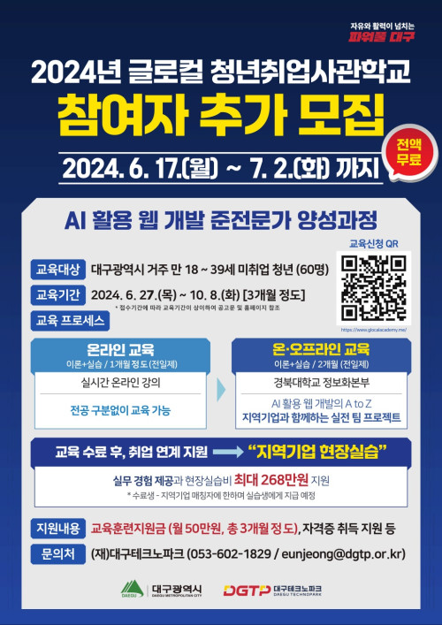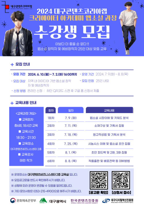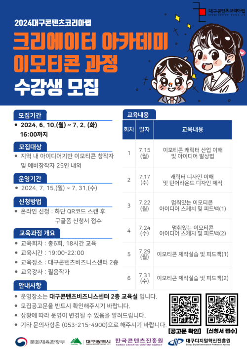 현재 모집 중 검색폼 대구광역시는 해당 페이지를 정보제공을 위한 목적으로 플랫폼을 운영하며, 각 게시글의 내용 및 운영방침에 대한 책임을 지지 않습니다. 대구광역시청년센터 사업 모아보기 전체보기 분야 : 전체 지원사업 채용/인턴/알바 기자단/서포터즈/자원봉사 공모전 교육/강연/토론 축제/공연/전시 커뮤니티활동 기타 정렬 : 전체 신규등록순 모집마감순 상태 : 전체 진행중 종료 기간 설정 검색 검색어 입력 꿀정보등록 누구나 쉽고 빠르게 청년정보를 등록하여 홍보할 수 있습니다. 전체선택 종료 [독서] 토요일 낮, 취향메이트 (7/13 첫 모임) 나를위함 ~ 2024.07.03 종료 2024 대구문화예술회관 제3기 예술아카데미 수강생 모집 대구시립예술단 ~ 2024.07.02 종료 2024년 대구콘텐츠코리아랩 크리에이터 아카데미 이모티콘 과정 (재)대구디지털혁신진흥원 ~ 2024.07.02 종료 2024년 대구콘텐츠코리아랩 크리에이터 아카데미 웹소설 과정 (재)대구디지털혁신진흥원 ~ 2024.07.02 종료 2024년 글로컬 청년취업사관학교 참여자 추가 모집 (주)클라인 ~ 2024.07.02 종료 (기간연장) 2024 대구 청년 금융부채 인터뷰 'VOICE ON' 대구청년연대은행디딤 ~ 2024.07.02 종료 「청년고민 툭톡」윤인지 선생님과 함께하는 미술심리 치료 "현재의 나, 강인한 내모습 발견하기" 달서구 청년센터 ~ 2024.07.02 종료 [경제] 일요일 낮, 나라는 브랜드 (7/28 첫 모임) 나를위함 ~ 2024.07.02 311 312 313 314 315 316 317 318 319 320