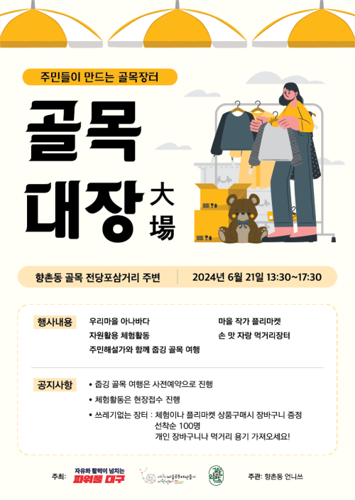 현재 모집 중 검색폼 대구광역시는 해당 페이지를 정보제공을 위한 목적으로 플랫폼을 운영하며, 각 게시글의 내용 및 운영방침에 대한 책임을 지지 않습니다. 대구광역시청년센터 사업 모아보기 전체보기 분야 : 전체 지원사업 채용/인턴/알바 기자단/서포터즈/자원봉사 공모전 교육/강연/토론 축제/공연/전시 커뮤니티활동 기타 정렬 : 전체 신규등록순 모집마감순 상태 : 전체 진행중 종료 기간 설정 검색 검색어 입력 꿀정보등록 누구나 쉽고 빠르게 청년정보를 등록하여 홍보할 수 있습니다. 전체선택 종료 [음악] 토요일밤, 세러데이 재즈클럽 (7/20 첫 모임) 나를위함 ~ 2024.06.24 종료 2024년 제5차 대구지역인적자원개발위원회 채용 공고 대구상공회의소(대구지역인적자원개발위원회) ~ 2024.06.23 종료 '21세기 데모론' 저자와 함께하는 온라인 독서모임 세모람 ~ 2024.06.23 종료 [음악] 일요일 저녁, 같이 들을래 (7/7 첫 모임) 나를위함 ~ 2024.06.23 종료 KOAMEX JOB FAIR 2024 (2024 대한민국 국제 첨단의료기기 및 의료 산업전 취업박람회) (6/21~6/23) 대구경북지역혁신플랫폼 전자정보기기사업단 ~ 2024.06.23 종료 [음악] 토요일 밤, 재즈 인 더 트랩 (7/6 첫 모임) 나를위함 ~ 2024.06.22 종료 맛찐행 vol. 11 멕시코- 맛따라 떠나는 찐 세계여행 플라이투게더 ~ 2024.06.21 종료 골목대장(大場) - 향촌동 골목길에서 장터가 다시 열립니다! 향촌동 언니쓰 ~ 2024.06.21 321 322 323 324 325 326 327 328 329 330