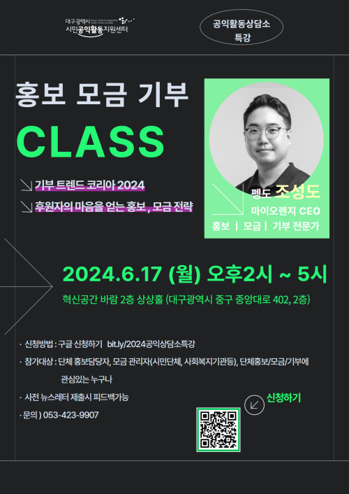 현재 모집 중 검색폼 대구광역시는 해당 페이지를 정보제공을 위한 목적으로 플랫폼을 운영하며, 각 게시글의 내용 및 운영방침에 대한 책임을 지지 않습니다. 대구광역시청년센터 사업 모아보기 전체보기 분야 : 전체 지원사업 채용/인턴/알바 기자단/서포터즈/자원봉사 공모전 교육/강연/토론 축제/공연/전시 커뮤니티활동 기타 정렬 : 전체 신규등록순 모집마감순 상태 : 전체 진행중 종료 기간 설정 검색 검색어 입력 꿀정보등록 누구나 쉽고 빠르게 청년정보를 등록하여 홍보할 수 있습니다. 전체선택 종료 [공익활동상담소 특강]홍보/모금/기부CLASS 대구시민공익활동지원센터 ~ 2024.06.16 종료 6월 '온정잇:다' 마음산책 [정:들이] 참여자 모집 안내 대구북구가족센터 ~ 2024.06.16 종료 [어반플레이/CJ올리브네트웍스/오픈놀] 로컬 파이오니어 스쿨 2024 [Track1-스쿨] 모집 (~6/16(일)) 어반플레이 ~ 2024.06.16 종료 [독서] 금요일 저녁, 고전살롱(금) (7/12 첫 모임) 나를위함 ~ 2024.06.16 종료 2024년 SC 창의실험지도사 양성교육(과학관 전시관 연계 체험 강사 양성) 심화과정 한국여성과학기술인육성재단 ~ 2024.06.16 종료 [독서] 목요일 밤, 인문학클럽(목) (7/11 첫 모임) 나를위함 ~ 2024.06.15 종료 '온에어, 미국은 내전중' 저자와 함께하는 온라인 독서모임 세모람 ~ 2024.06.15 종료 I 돈 Care 대구남구가족센터 ~ 2024.06.15 331 332 333 334 335 336 337 338 339 340