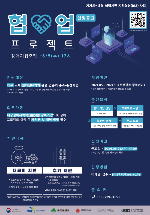 현재 모집 중 검색폼 대구광역시는 해당 페이지를 정보제공을 위한 목적으로 플랫폼을 운영하며, 각 게시글의 내용 및 운영방침에 대한 책임을 지지 않습니다. 대구광역시청년센터 사업 모아보기 전체보기 분야 : 전체 지원사업 채용/인턴/알바 기자단/서포터즈/자원봉사 공모전 교육/강연/토론 축제/공연/전시 커뮤니티활동 기타 정렬 : 전체 신규등록순 모집마감순 상태 : 전체 진행중 종료 기간 설정 검색 검색어 입력 꿀정보등록 누구나 쉽고 빠르게 청년정보를 등록하여 홍보할 수 있습니다. 전체선택 종료 「2024 청년귀환 채널 구축 사업」스타트업캠프 <홈커밍대구> 참가자 2차 모집 대구창조경제혁신센터 ~ 2024.06.06 종료 HABTHON 2024ㅣ합톤 2024 모집 공고 춘천시공연예술창업지원센터 ~ 2024.06.06 종료 '하루 15분 정리의 힘' 저자와 함께하는 온라인 독서모임 세모람 ~ 2024.06.05 종료 전자정보기기 글로벌 R&BD 패키지 지원 사업 참가 기업 모집 (~6/5) 대구경북지역혁신플랫폼 전자정보기기사업단 ~ 2024.06.05 종료 해외시장 진출을 위한 실증 인프라 활용 제품화 지원 사업 참가 기업 모집 (~6/5) 대구경북지역혁신플랫폼 전자정보기기사업단 ~ 2024.06.05 종료 협업 프로젝트 참가 기업 모집 (~6/5) 대구경북지역혁신플랫폼 전자정보기기사업단 ~ 2024.06.05 종료 2024년 생성형 AI 전문 강사 양성과정 한국여성과학기술인육성재단 ~ 2024.06.05 종료 [HiVE] 특수용접사 과정 수강생 모집 계명문화대학교 ~ 2024.06.05 331 332 333 334 335 336 337 338 339 340
