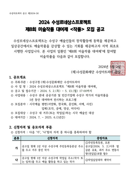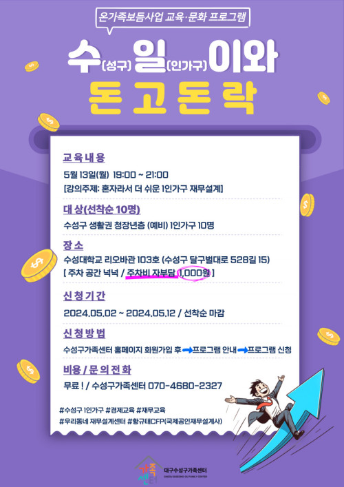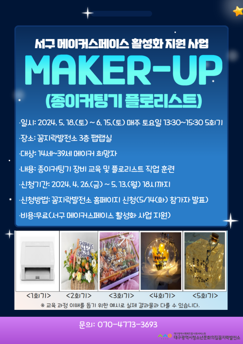 현재 모집 중 검색폼 대구광역시는 해당 페이지를 정보제공을 위한 목적으로 플랫폼을 운영하며, 각 게시글의 내용 및 운영방침에 대한 책임을 지지 않습니다. 대구광역시청년센터 사업 모아보기 전체보기 분야 : 전체 지원사업 채용/인턴/알바 기자단/서포터즈/자원봉사 공모전 교육/강연/토론 축제/공연/전시 커뮤니티활동 기타 정렬 : 전체 신규등록순 모집마감순 상태 : 전체 진행중 종료 기간 설정 검색 검색어 입력 꿀정보등록 누구나 쉽고 빠르게 청년정보를 등록하여 홍보할 수 있습니다. 전체선택 종료 2024 주민주도 도시재생 리빙랩 대구광역시 창의도시재생지원센터 ~ 2024.05.14 종료 청년 창업·창직 Plus Up! 프로그램 참가 예비 창업팀 모집 (~5/14) 대구경북지역혁신플랫폼 전자정보기기사업단 ~ 2024.05.14 종료 온가족보듬사업 1인가구 교육문화프로그램 경제 재무교육 '수일이네 돈고돈락' 대구수성구가족센터 ~ 2024.05.13 종료 2024 수성르네상스프로젝트 제8회 미술작품 대여제 <작품> 모집 공고 (재)수성문화재단 수성아트피아 ~ 2024.05.13 종료 청년 MBTI 집단상담 참여자 모집! 서구종합사회복지관 ~ 2024.05.13 종료 2024년 제1차 JMT(Job Membership Training) 대구지역인적자원개발위원회 ~ 2024.05.13 대구광역시청년센터 종료 「2024 대구청년정책심포지엄」Powerful Youth, Youthful Daegu! 개최 안내 대구광역시청년센터 ~ 2024.05.13 종료 메이커역량강화 프로그램 '메이커업_종이커팅기' 참가자 모집 대구광역시청소년문화의집 꼼지락발전소 ~ 2024.05.13 351 352 353 354 355 356 357 358 359 360
