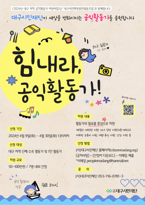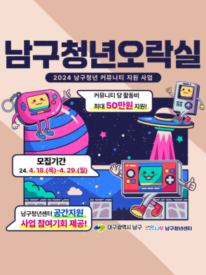 현재 모집 중 검색폼 대구광역시는 해당 페이지를 정보제공을 위한 목적으로 플랫폼을 운영하며, 각 게시글의 내용 및 운영방침에 대한 책임을 지지 않습니다. 대구광역시청년센터 사업 모아보기 전체보기 분야 : 전체 지원사업 채용/인턴/알바 기자단/서포터즈/자원봉사 공모전 교육/강연/토론 축제/공연/전시 커뮤니티활동 기타 정렬 : 전체 신규등록순 모집마감순 상태 : 전체 진행중 종료 기간 설정 검색 검색어 입력 꿀정보등록 누구나 쉽고 빠르게 청년정보를 등록하여 홍보할 수 있습니다. 전체선택 종료 2024년 대구 지역 공익활동가 지원사업 공모 (사)대구시민재단 ~ 2024.04.30 종료 시민 탄소중립 실천 캠페인 기획단 '톡톡' 모집 대구광역시 환경교육센터 ~ 2024.04.30 종료 5월 대구시청자미디어센터 상설미디어교육 수강생모집 대구시청자미디어센터 ~ 2024.04.30 종료 [수성구청년센터 청년특화교육] 금융교육 수성구청년센터 ~ 2024.04.30 종료 생동감(SDGs) 넘치는 우리 마을 만들기 "생활환경지도사 양성과정" 모집 범물종합사회복지관 ~ 2024.04.30 종료 생동감(SDGs) 넘치는 우리 마을 만들기 "생동감 서포터즈" 모집 범물종합사회복지관 ~ 2024.04.30 종료 [ 사업비 O / 사무실 O / 온오프교육 O ] 대구에서 사업하는 제일 쉬운 방법! (주)디지스타트업 인큐베이터 ~ 2024.04.30 종료 남구청년오락실[남구청년 커뮤니티 활동 지원 사업] 참가자 모집! 남구청년센터 ~ 2024.04.29 351 352 353 354 355 356 357 358 359 360