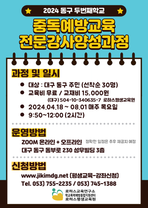 현재 모집 중 검색폼 대구광역시는 해당 페이지를 정보제공을 위한 목적으로 플랫폼을 운영하며, 각 게시글의 내용 및 운영방침에 대한 책임을 지지 않습니다. 대구광역시청년센터 사업 모아보기 전체보기 분야 : 전체 지원사업 채용/인턴/알바 기자단/서포터즈/자원봉사 공모전 교육/강연/토론 축제/공연/전시 커뮤니티활동 기타 정렬 : 전체 신규등록순 모집마감순 상태 : 전체 진행중 종료 기간 설정 검색 검색어 입력 꿀정보등록 누구나 쉽고 빠르게 청년정보를 등록하여 홍보할 수 있습니다. 전체선택 대구광역시청년센터 종료 <2024 대구청년정책네트워크> 참여청년 모집 대구광역시청년센터 ~ 2024.04.12 종료 실무웹디자이너, 디지털마케터 양성과정 대구여성인력개발센터 ~ 2024.04.12 종료 중독예방교육 전문강사 양성과정 로하스교육연구소 학교폭력예방 종합지원센터 ~ 2024.04.12 종료 2024 해피 파트너스 사업 『원예 프로그램』 안내 대구서구가족센터 ~ 2024.04.11 종료 2024청년도전지원사업 달서구청년도전지원사업본부 ~ 2024.04.11 종료 남가네 독서모임 대구남구가족센터 ~ 2024.04.11 종료 2024년 Dalseo 글로벌 취업콘서트 달서구청 ~ 2024.04.11 종료 전사지를 활용한 '나만의 머그컵' 만들기 동구청년센터the꿈 ~ 2024.04.11 361 362 363 364 365 366 367 368 369 370