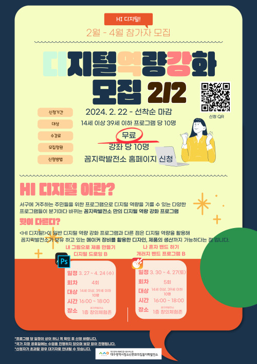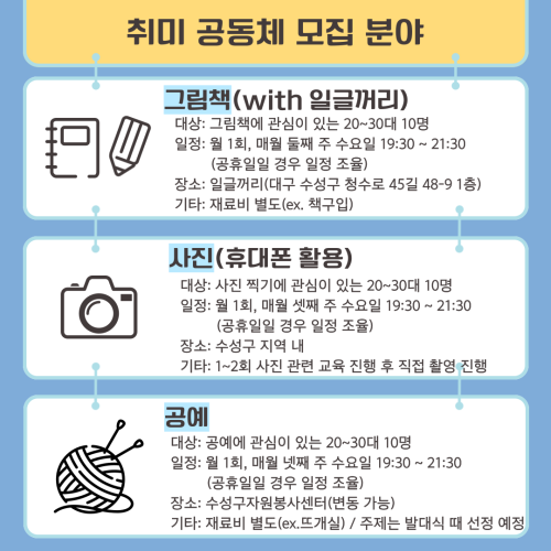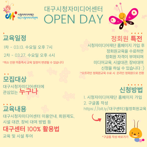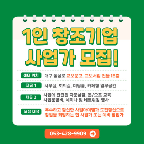 현재 모집 중 검색폼 대구광역시는 해당 페이지를 정보제공을 위한 목적으로 플랫폼을 운영하며, 각 게시글의 내용 및 운영방침에 대한 책임을 지지 않습니다. 대구광역시청년센터 사업 모아보기 전체보기 분야 : 전체 지원사업 채용/인턴/알바 기자단/서포터즈/자원봉사 공모전 교육/강연/토론 축제/공연/전시 커뮤니티활동 기타 정렬 : 전체 신규등록순 모집마감순 상태 : 전체 진행중 종료 기간 설정 검색 검색어 입력 꿀정보등록 누구나 쉽고 빠르게 청년정보를 등록하여 홍보할 수 있습니다. 전체선택 종료 [ 사업지원금 O / 사무실 제공 O ] 대구 창조기업 지원센터 (주)디지스타트업 인큐베이터 ~ 2024.03.28 종료 [미니인턴X별하] 기업 실무 경험과 취업, 두마리 토끼잡기! 구로청년이룸 ~ 2024.03.27 종료 남구청년센터 문화의 날 남구청년센터 ~ 2024.03.27 종료 🎞️주말의 명화 - 🎥장국영 특별전 남구청년센터 ~ 2024.03.27 종료 [2024년 칠곡군 청년예비창업가육성사업] 참여자 모집 공고 영진전문대학교 창업보육센터 ~ 2024.03.26 종료 [수성구자원봉사센터] 취미 공동체 참여자 모집 수성구자원봉사센터 ~ 2024.03.26 종료 3월 대구시청자미디어센터 정회원교육+시설투어 대구시청자미디어센터 ~ 2024.03.26 종료 [꼼지락발전소] NEW 2 - 4월 디지털 역량 강화 프로그램 참가자 모집 꼼지락발전소 ~ 2024.03.26 371 372 373 374 375 376 377 378 379 380