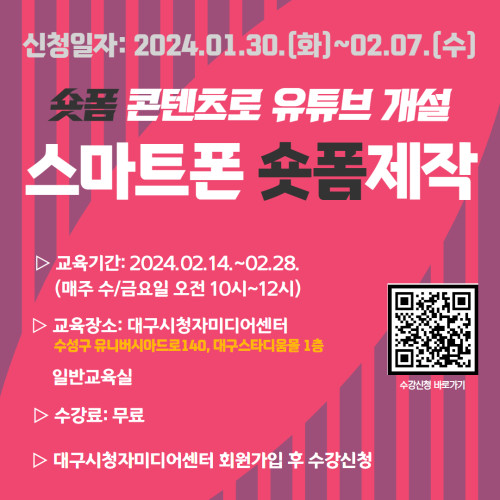 현재 모집 중 검색폼 대구광역시는 해당 페이지를 정보제공을 위한 목적으로 플랫폼을 운영하며, 각 게시글의 내용 및 운영방침에 대한 책임을 지지 않습니다. 대구광역시청년센터 사업 모아보기 전체보기 분야 : 전체 지원사업 채용/인턴/알바 기자단/서포터즈/자원봉사 공모전 교육/강연/토론 축제/공연/전시 커뮤니티활동 기타 정렬 : 전체 신규등록순 모집마감순 상태 : 전체 진행중 종료 기간 설정 검색 검색어 입력 꿀정보등록 누구나 쉽고 빠르게 청년정보를 등록하여 홍보할 수 있습니다. 전체선택 종료 스마트폰 숏폼 콘텐츠 제작 대구시청자미디어센터 ~ 2024.02.07 종료 스피치교육: 내 목소리에 자신감+ 대구시청자미디어센터 ~ 2024.02.04 대구광역시청년센터 종료 2024 대구청년정책네트워크 운영지원단 모집공고 대구광역시청년센터 ~ 2024.02.04 종료 작고 작은 책 만들기 아무의 방 ~ 2024.02.04 종료 글쓰기 클럽 /유치찬란/ 2월 멤버 모집 아무의 방 ~ 2024.02.03 종료 선거문화영화제 기획단을 모집합니다! 대구광역시청소년문화의집 꼼지락발전소 ~ 2024.02.03 종료 봄이 오는 소리 “입춘” 절기마음건강챙김 자연닮은치유농장 ~ 2024.02.02 종료 공존을 꿈꾸는 독서 2월 모임 : 나는 동물(홍은전) 책빵고스란히 ~ 2024.02.02 391 392 393 394 395 396 397 398 399 400