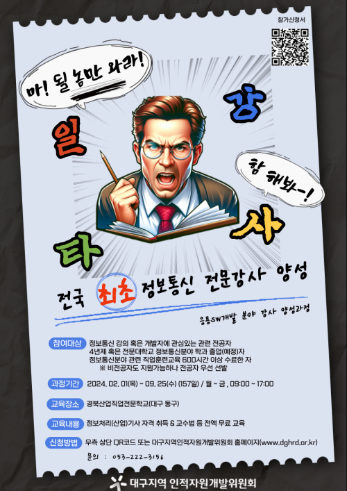 현재 모집 중 검색폼 대구광역시는 해당 페이지를 정보제공을 위한 목적으로 플랫폼을 운영하며, 각 게시글의 내용 및 운영방침에 대한 책임을 지지 않습니다. 대구광역시청년센터 사업 모아보기 전체보기 분야 : 전체 지원사업 채용/인턴/알바 기자단/서포터즈/자원봉사 공모전 교육/강연/토론 축제/공연/전시 커뮤니티활동 기타 정렬 : 전체 신규등록순 모집마감순 상태 : 전체 진행중 종료 기간 설정 검색 검색어 입력 꿀정보등록 누구나 쉽고 빠르게 청년정보를 등록하여 홍보할 수 있습니다. 전체선택 종료 2024년 대구 다양성영화 지원사업 작품 공모 대구영상미디어센터 ~ 2024.02.02 종료 진짜 일타강사 되고싶어? 응용SW개발 분야 전문강사 되어보자 대구지역인적자원개발위원회 ~ 2024.02.01 종료 네이처플로우요가 | 절기따라 몸 움직이기 그대로봄연구소 ~ 2024.01.31 종료 <모든 사람에 대한 이론> 북토크 환상문학 ~ 2024.01.31 종료 [두다닷] 2024 두다닷 임원진 모집 두다닷 ~ 2024.01.31 종료 전자정보기기사업단 사업 성과 공유 페스타 (1/31) 대구경북지역혁신플랫폼 전자정보기기사업단 ~ 2024.01.30 종료 서로일상 공유 작업실 서로일상 ~ 2024.01.30 종료 오늘을 위로하는 식사 모임 [오늘의 식구] 레벨제로 ~ 2024.01.27 391 392 393 394 395 396 397 398 399 400