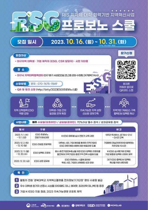 현재 모집 중 검색폼 대구광역시는 해당 페이지를 정보제공을 위한 목적으로 플랫폼을 운영하며, 각 게시글의 내용 및 운영방침에 대한 책임을 지지 않습니다. 대구광역시청년센터 사업 모아보기 전체보기 분야 : 전체 지원사업 채용/인턴/알바 기자단/서포터즈/자원봉사 공모전 교육/강연/토론 축제/공연/전시 커뮤니티활동 기타 정렬 : 전체 신규등록순 모집마감순 상태 : 전체 진행중 종료 기간 설정 검색 검색어 입력 꿀정보등록 누구나 쉽고 빠르게 청년정보를 등록하여 홍보할 수 있습니다. 전체선택 종료 ESG 프로보노 스쿨 참가자 모집 (~10/31) 대구경북지역혁신플랫폼 전자정보기기사업단 ~ 2023.10.31 종료 2023년 ABB 해커톤 대회 참가자 모집 (~10/31) 대구경북지역혁신플랫폼 전자정보기기사업단 ~ 2023.10.31 종료 ESG 프로보노 스쿨 (주)맘쓰랩 ~ 2023.10.31 종료 시월에는 시를 읽어요 – 함께 읽고 쓰기 커피는 책이랑 ~ 2023.10.31 종료 [사회연대은행] 사회적경제기업가특강 (4차) - 소셜벤처의 세무회계 참여자 모집 (사) 함께만드는세상 사회연대은행 ~ 2023.10.31 종료 청년 창업·창직 Plus Up! 프로그램 참가 청년 예비 창업팀 모집 (~10/31) 대구경북지역혁신플랫폼 전자정보기기사업단 ~ 2023.10.31 종료 MBTI 지피지기 집단상담 참여자 모집 월성종합사회복지관 ~ 2023.10.31 종료 너랑 그린(green) 달서구 / 대명유수지 포함 달성습지 일원 탐방 및 녹색문화체험 대구녹색소비자연대 ~ 2023.10.31 421 422 423 424 425 426 427 428 429 430