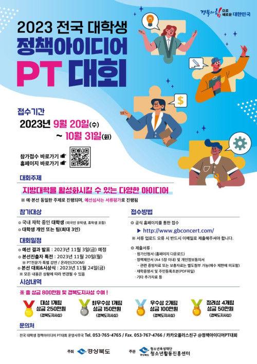 현재 모집 중 검색폼 대구광역시는 해당 페이지를 정보제공을 위한 목적으로 플랫폼을 운영하며, 각 게시글의 내용 및 운영방침에 대한 책임을 지지 않습니다. 대구광역시청년센터 사업 모아보기 전체보기 분야 : 전체 지원사업 채용/인턴/알바 기자단/서포터즈/자원봉사 공모전 교육/강연/토론 축제/공연/전시 커뮤니티활동 기타 정렬 : 전체 신규등록순 모집마감순 상태 : 전체 진행중 종료 기간 설정 검색 검색어 입력 꿀정보등록 누구나 쉽고 빠르게 청년정보를 등록하여 홍보할 수 있습니다. 전체선택 종료 메라톤 (재)대구테크노파크 스타트라인 ~ 2023.10.31 종료 [교육비지원] 글로벌 브랜드마케팅 아카데미 1기 교육생 모집 (주)리퍼블릭스포츠 ~ 2023.10.31 종료 [ 사업지원금 + 사무실 제공 ] 대구 1인 창조기업 지원센터 (주)디지스타트업 인큐베이터 ~ 2023.10.31 종료 2023 전국 대학생 정책아이디어 PT대회 경상북도 / 경상북도 청소년활동진흥센터 ~ 2023.10.31 종료 금요일 밤, 우리들의 영화로운 대화 모디어 ~ 2023.10.31 종료 2023 탄소중립 챌린지 대구야!걷!자! (자전거 부문) (주) 담비 ~ 2023.10.31 종료 대구청년 슬기로운 인생콘서트(임홍택 작가 특강) 참여자 모집 대구광역시/대구창조경제혁신센터 ~ 2023.10.30 종료 [굿네이버스] 미취업청년 인성역량 강화 자격증 과정 2기 참여자 모집 굿네이버스 ~ 2023.10.30 421 422 423 424 425 426 427 428 429 430